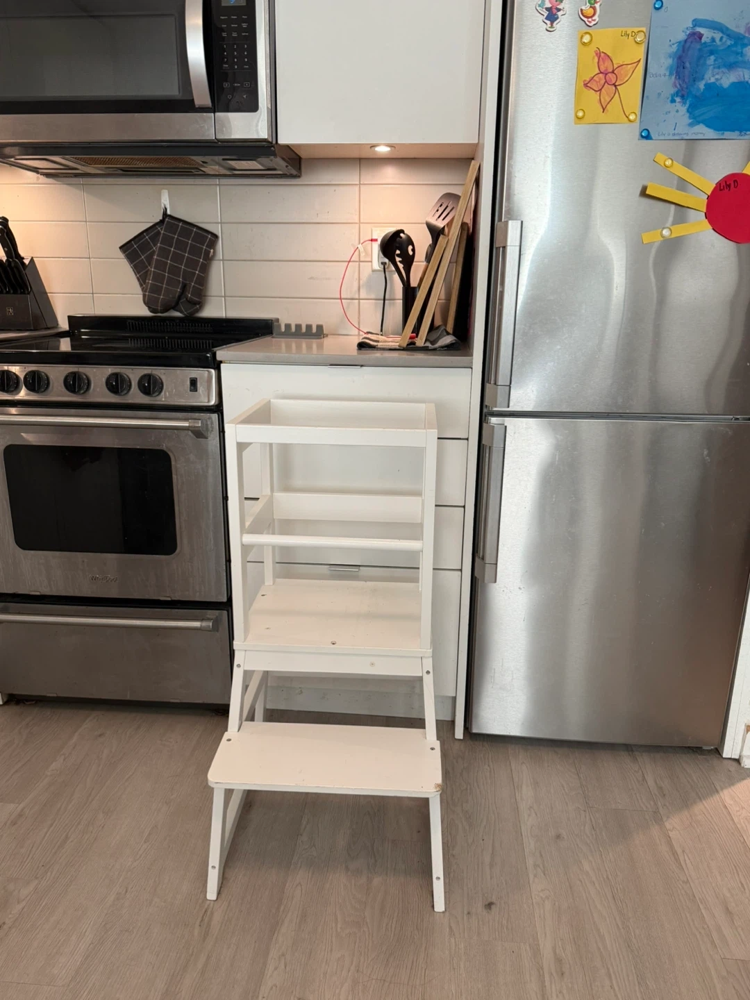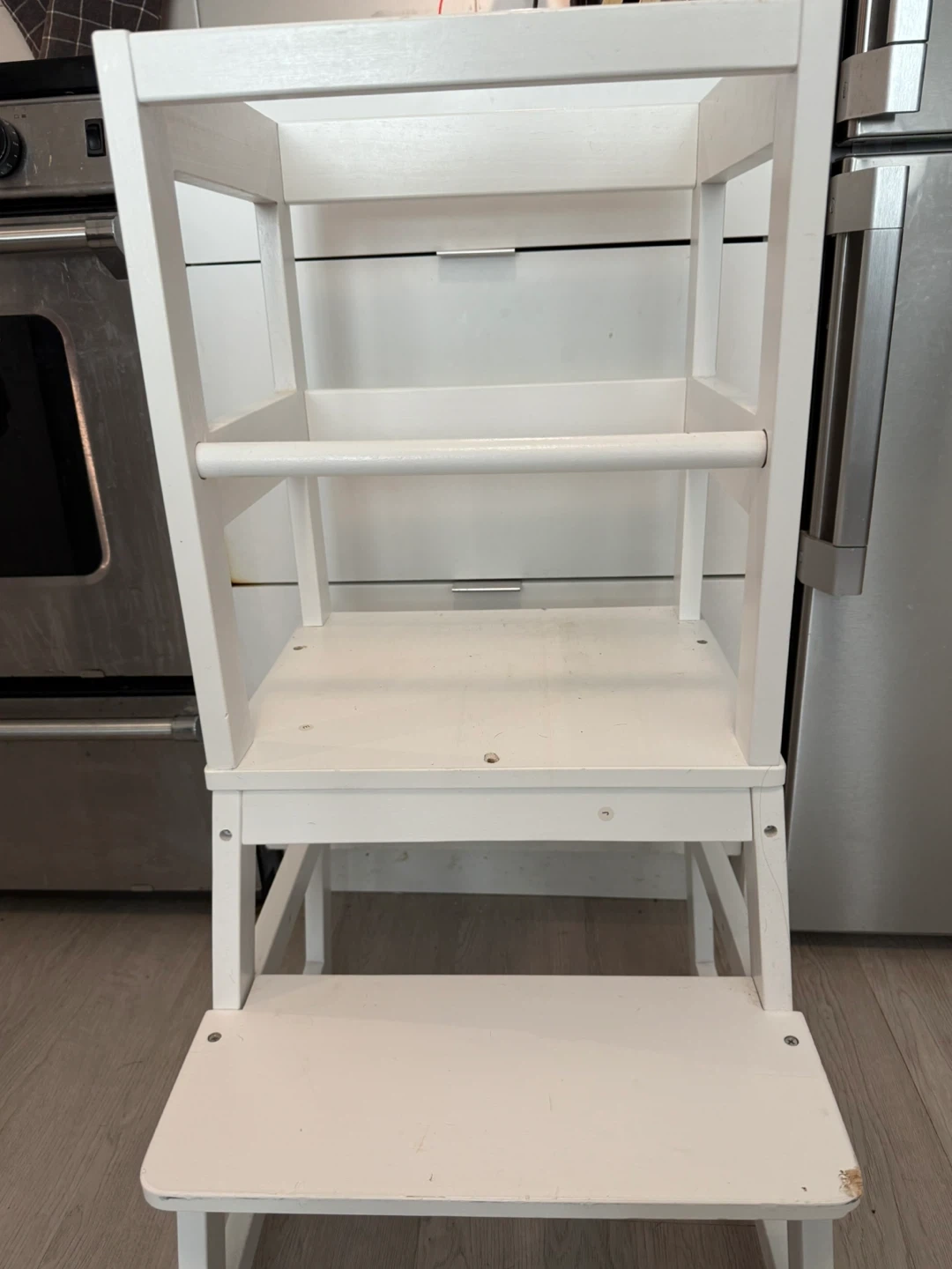 This is a Little Helper FunPod kitchen helper step stool. It's perfect for helping your little one reach the counter safely so they can help with cooking and baking! It's in great condition and ready for a new home.