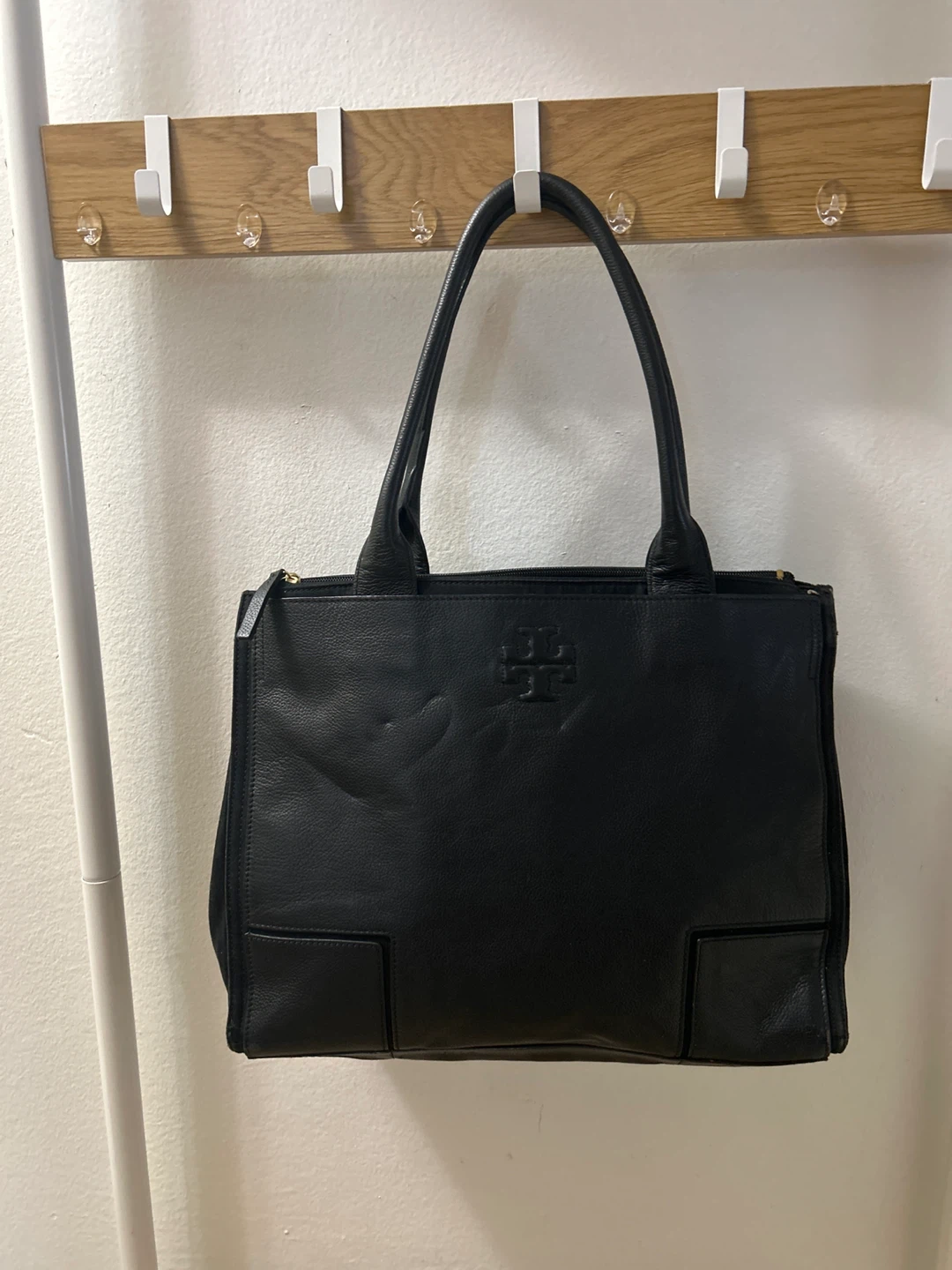 This is a Tory Burch black leather tote bag. It's in good condition and ready for a new home! Great for everyday use or as a stylish work bag