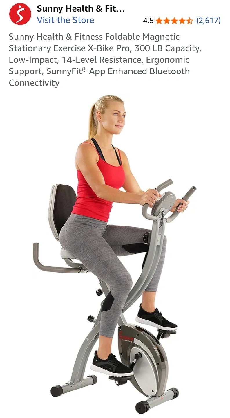 Selling a Sunny Health & Fitness Foldable Magnetic Stationary Exercise X-Bike Pro! It has a 300 LB capacity, low-impact design, 14-level resistance, and ergonomic support. Plus, it has SunnyFit App Enhanced Bluetooth Connectivity. (Open to offers below listed price)