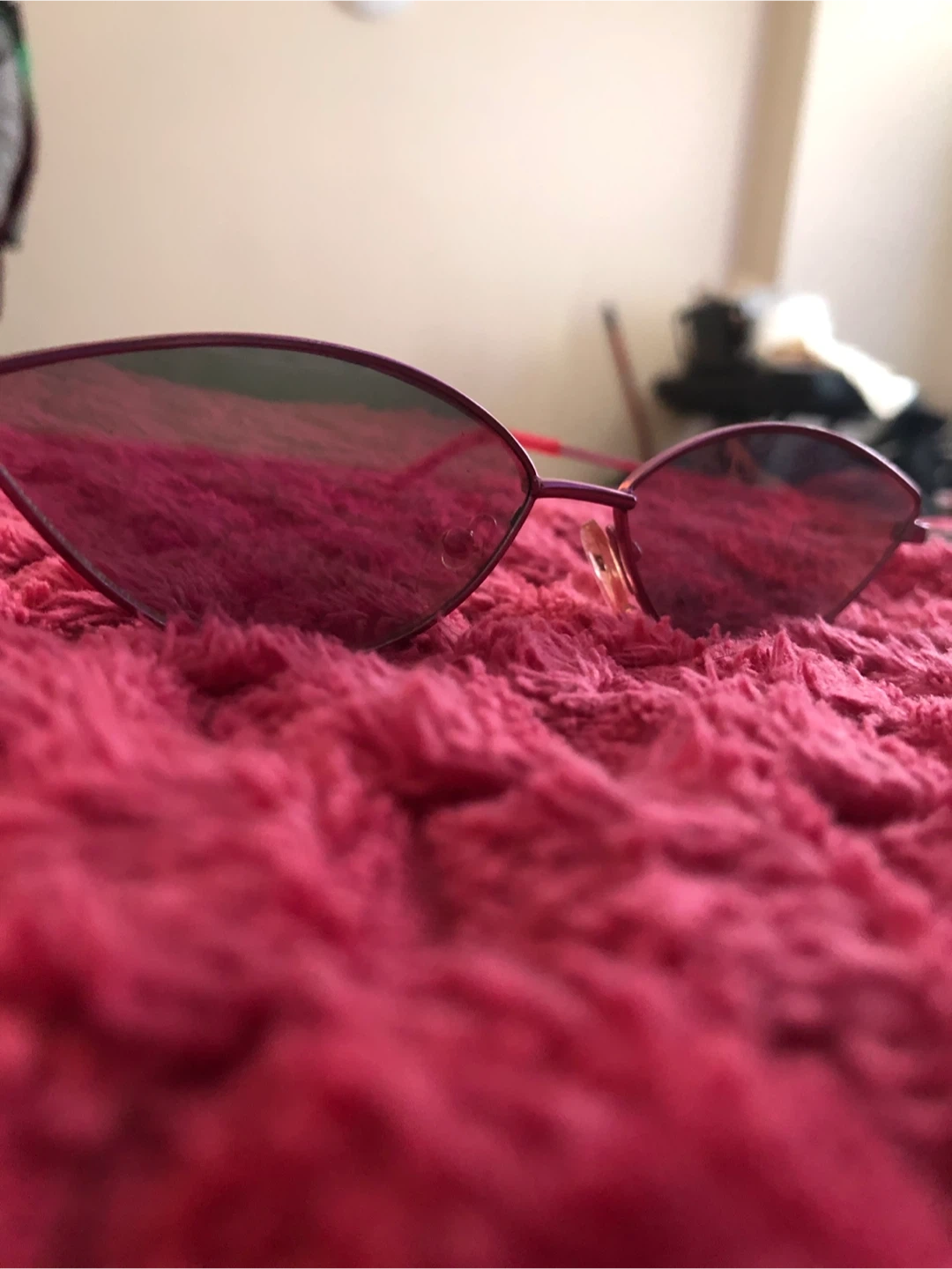 Selling a pair of pink cat eye sunglasses. A few tiny scratches from use but still in good condition and ready for a new owner!