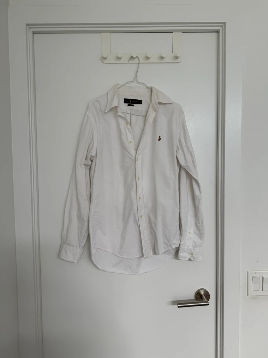 Selling a Ralph Lauren classic fit shirt in white. The size is S. It's made of 100% cotton. Condition is good (minor stains) Pick up only - downtown Toronto Cash only