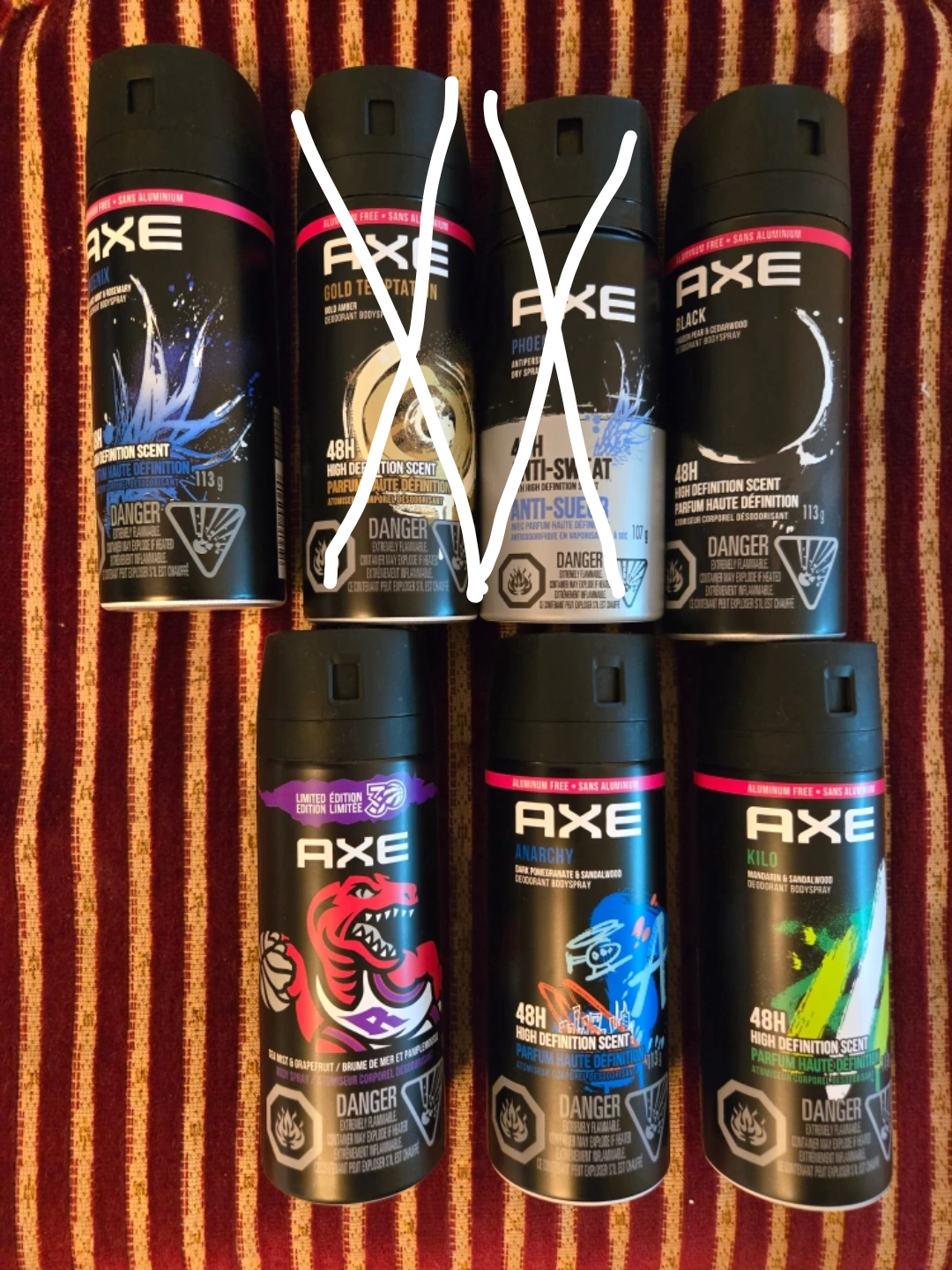 1000+Includes a variety of scents like Phoenix, Gold Temptation, Black, Anarchy, and Kilo. All are 48H high definition scent. Multiple of each available $3.50 each