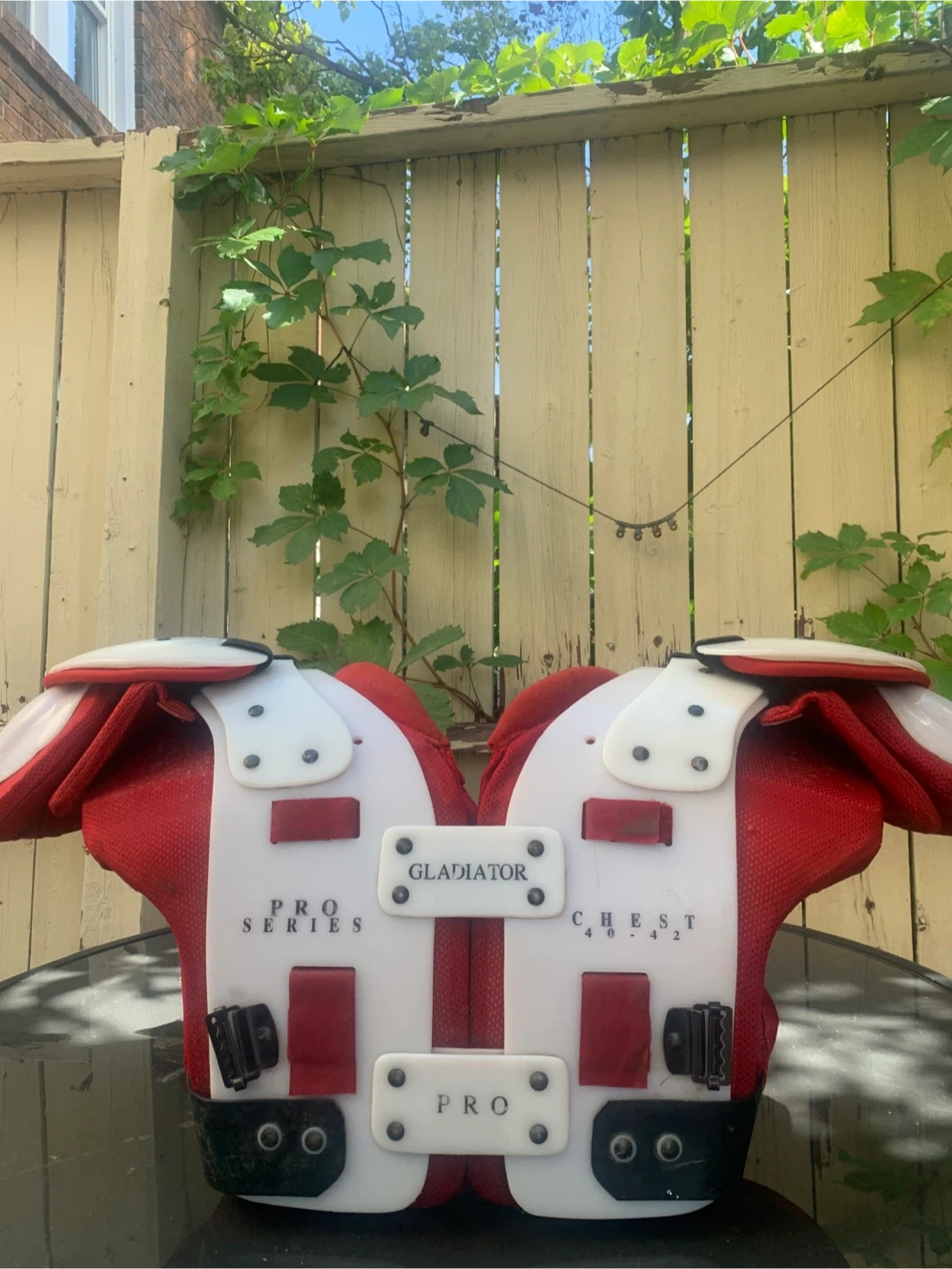 Selling a Gladiator Pro Series football shoulder pad. It's in good condition and ready for the season! Size is L and chest size is 40-42.