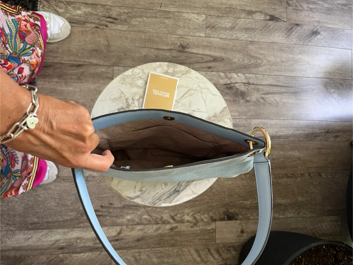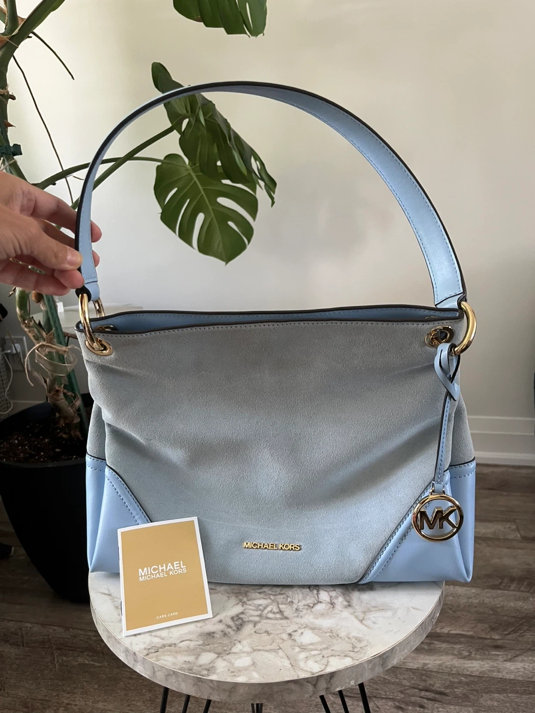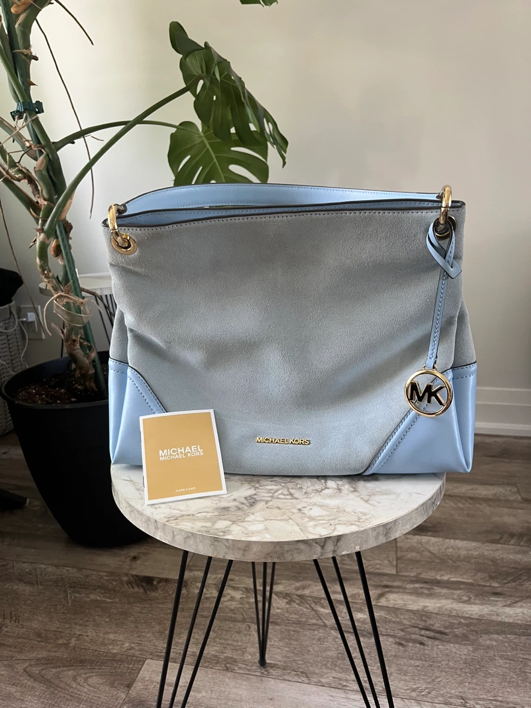 Gently used Michael Kors shoulder bag in a lovely blue colour. It comes with its original dust bag and care card. Perfect for everyday use!