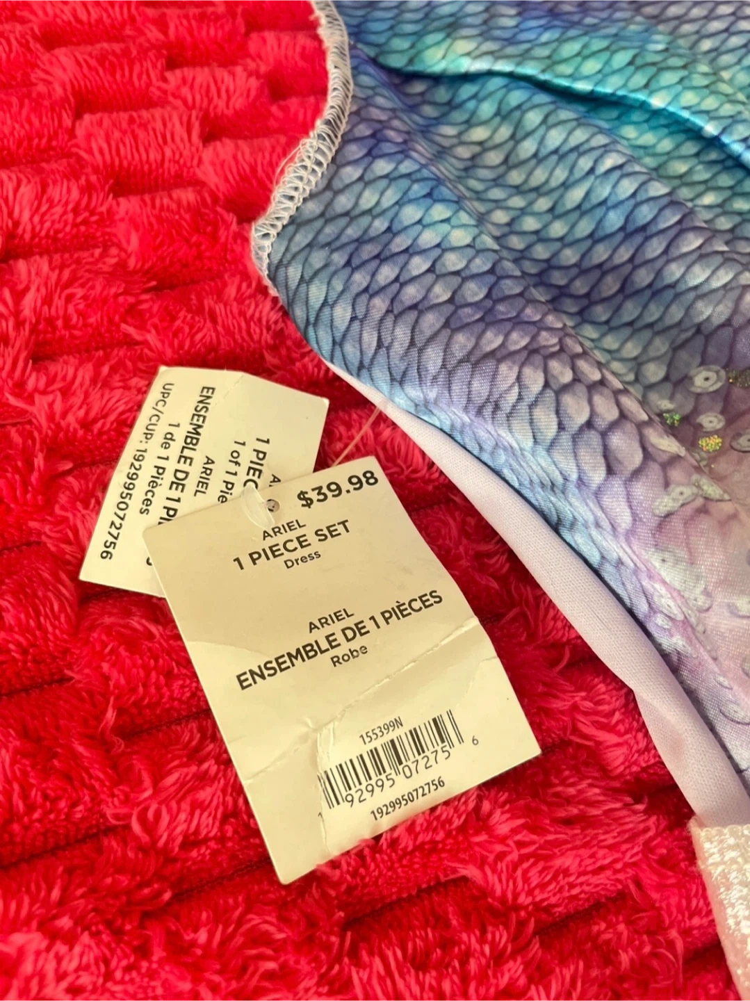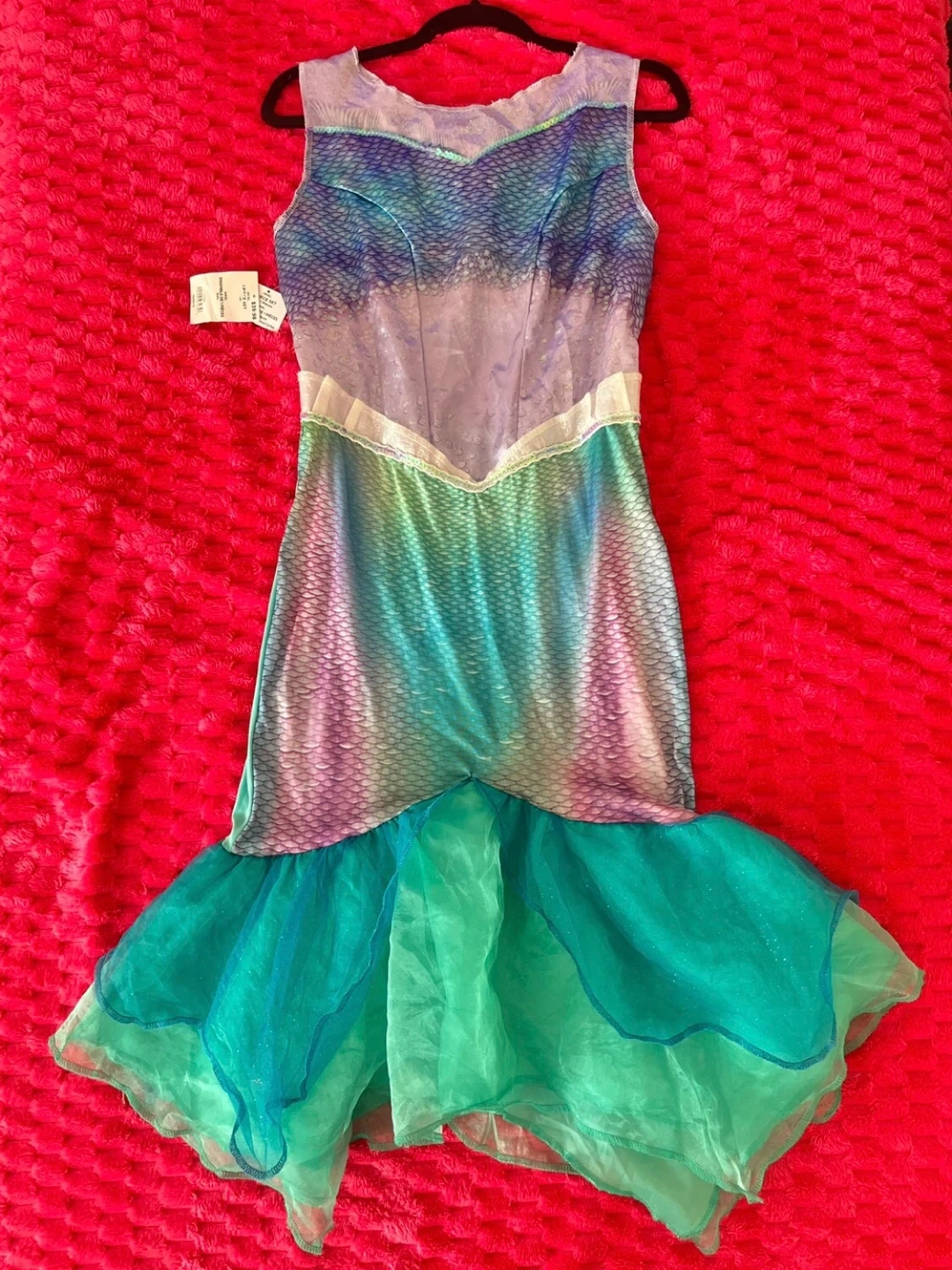 This adorable Ariel dress from Disney's The Little Mermaid is perfect for any little fan! It's a 1-piece dress set, size S/P (4-6). The original price was $39.98. It's in great condition and ready for a new home!