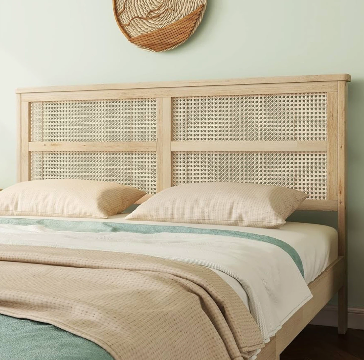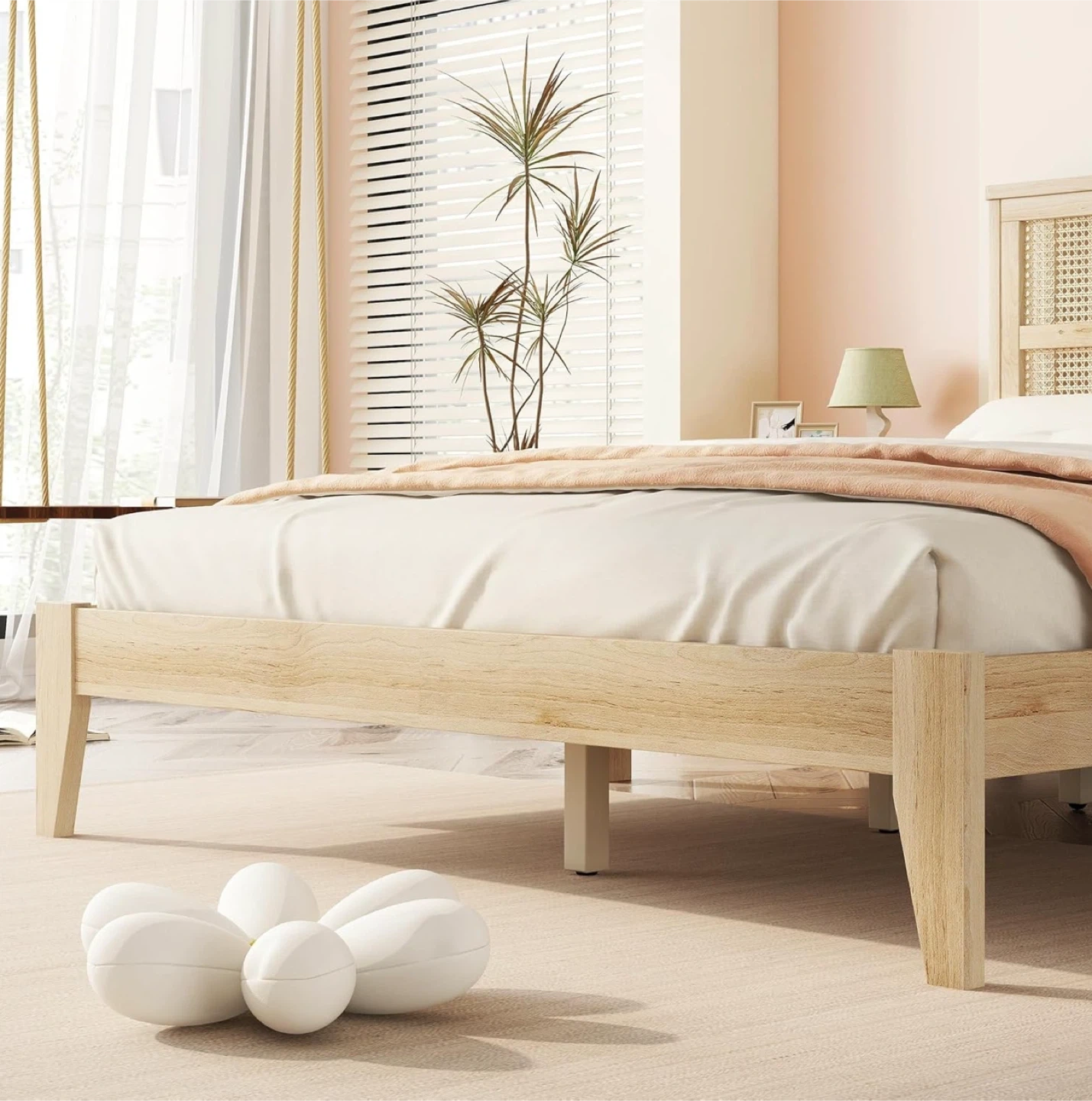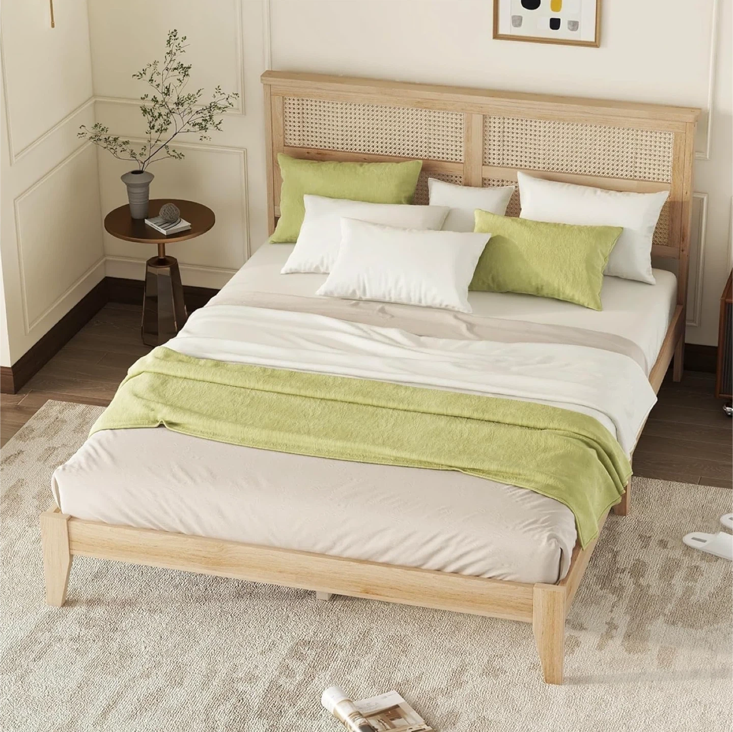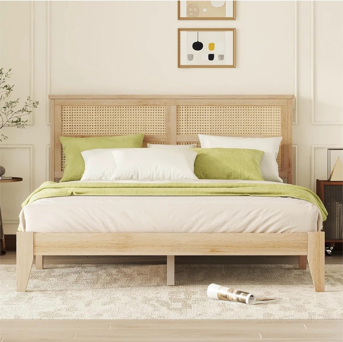 FULife Queen Size Platform Bed with Rattan Headboard