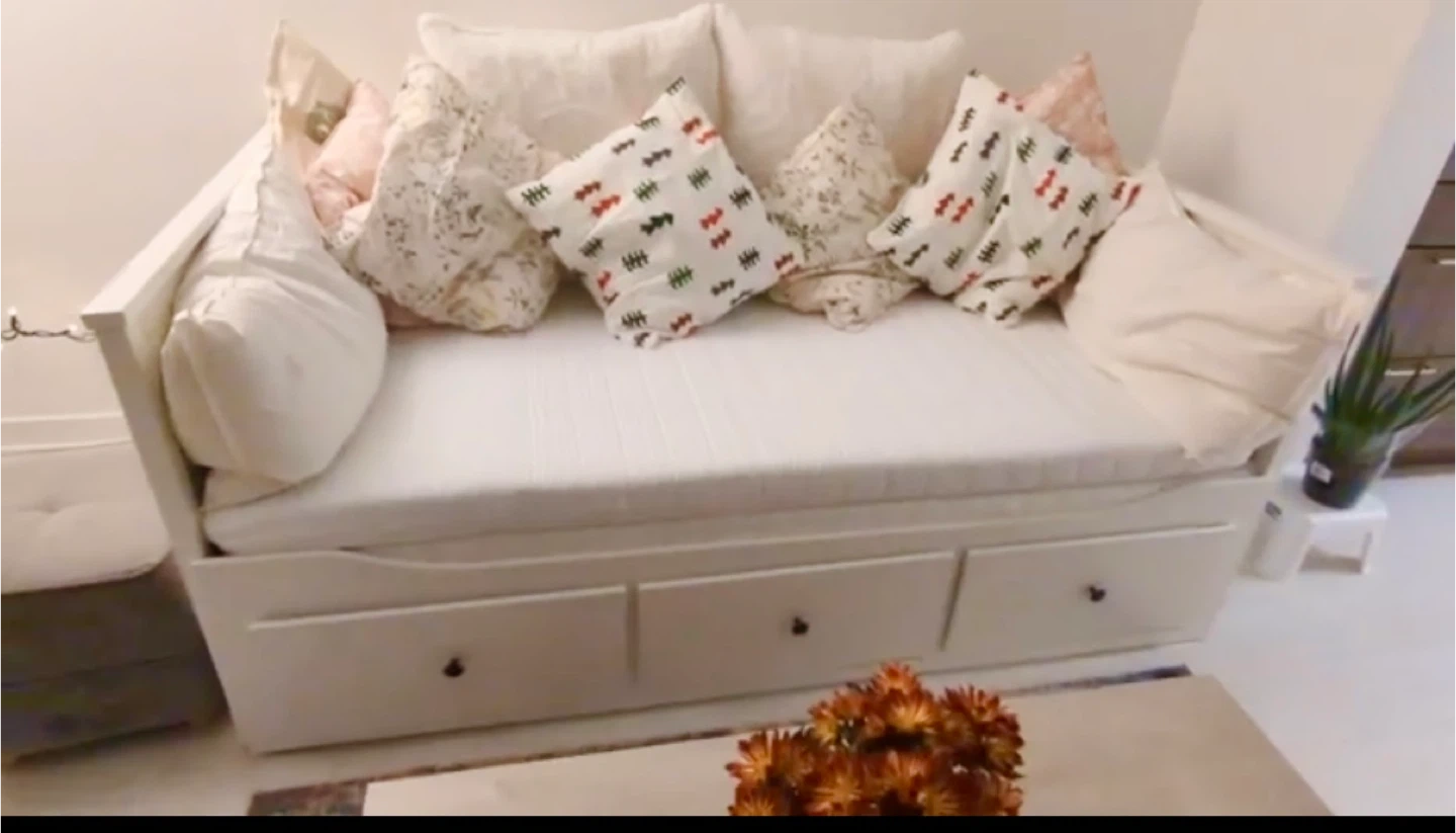 Selling an IKEA Hemnes daybed frame in white. It's in great condition and ready to add a touch of Scandinavian style to your home. Perfect as a sofa or a bed for guests!