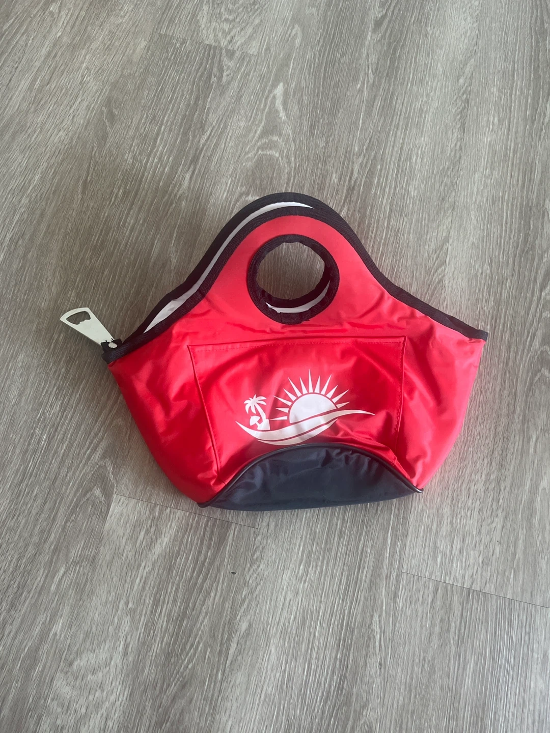 Selling a red beach cooler bag! It's perfect for carrying your essentials to the beach or pool. The bag features a fun beachy design and a convenient bottle opener on the side. Great for summer outings!