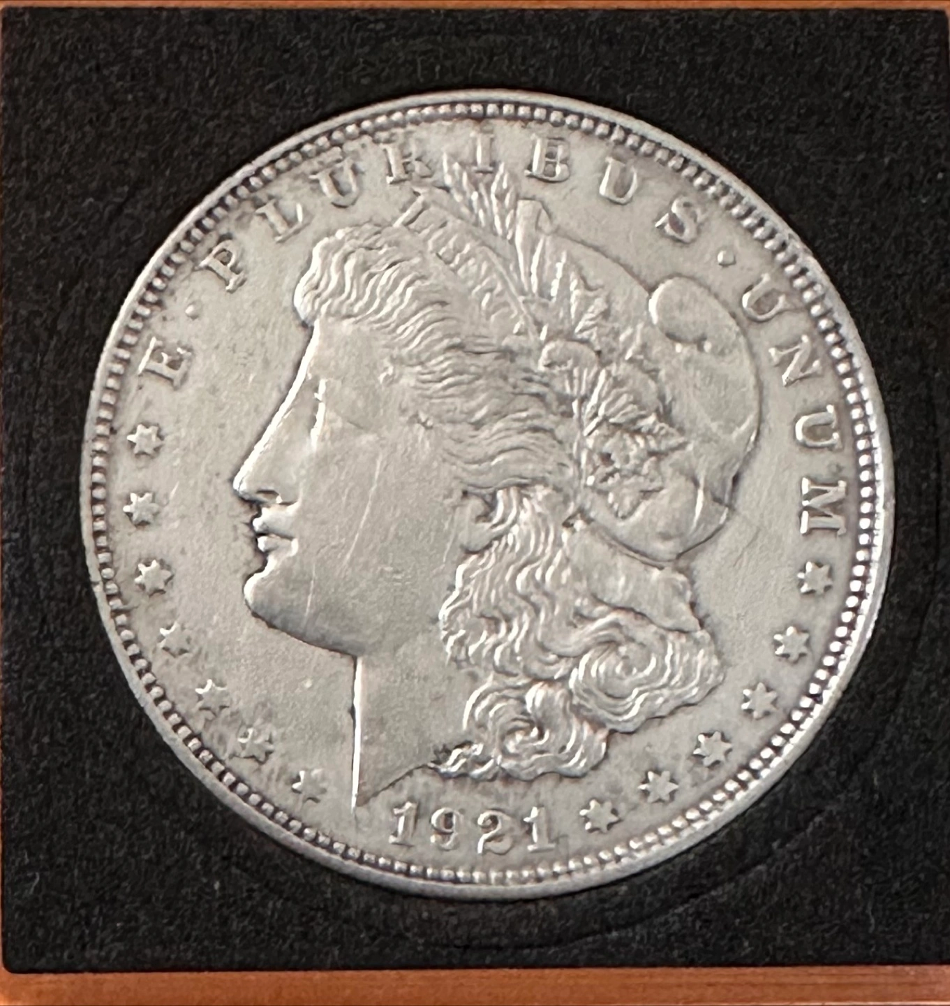 Selling an authentic 1921-D US Morgan Silver Dollar. It's a beautiful coin with the classic design. A great addition to any collection! It's a beautiful piece of history!