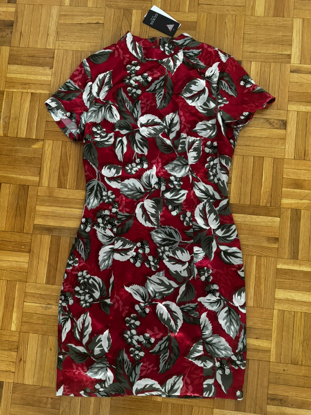 This Guess SS Sandra dress is a beautiful addition to any wardrobe! It features a lovely floral pattern on a red background.