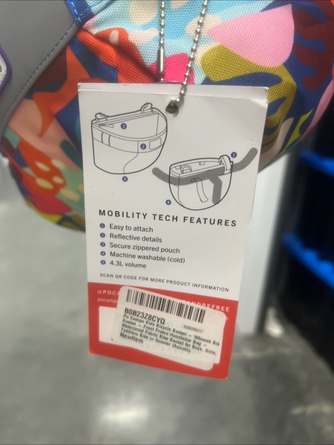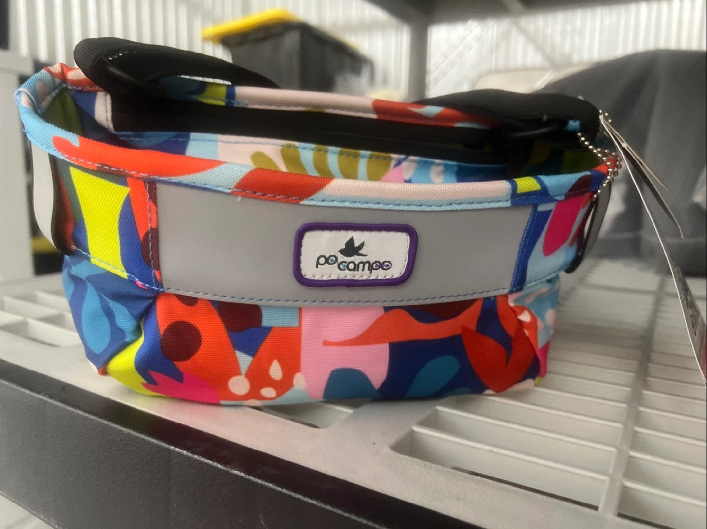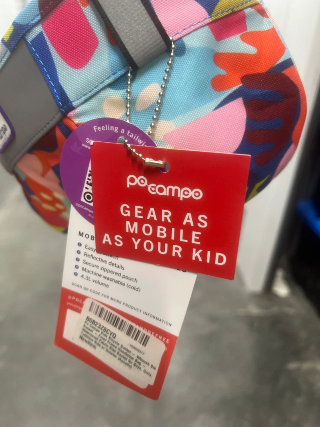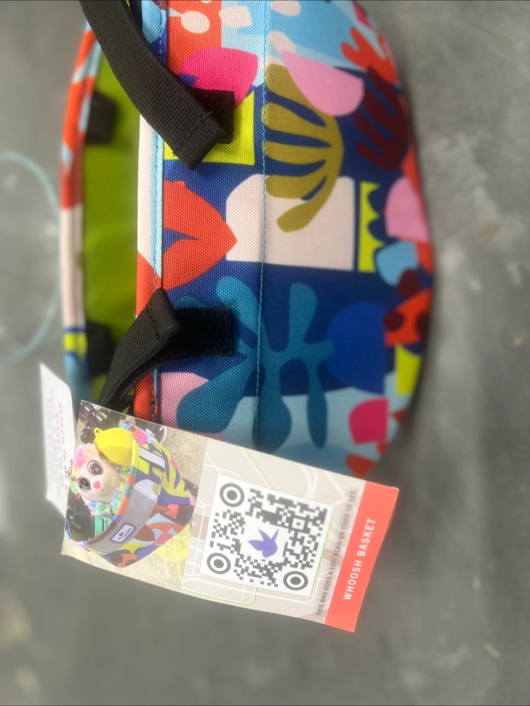 This Po Campo Whoosh Bicycle Basket in the Aqualila pattern is perfect for carrying your essentials on bike rides! It's easy to attach with reflective details for added safety. It also features a secure zippered pouch and is machine washable (cold).