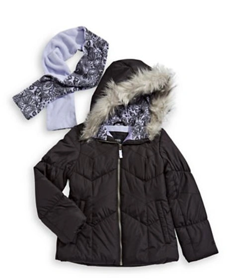 Girls London Fog Puffer Jacket with Matching Scarf