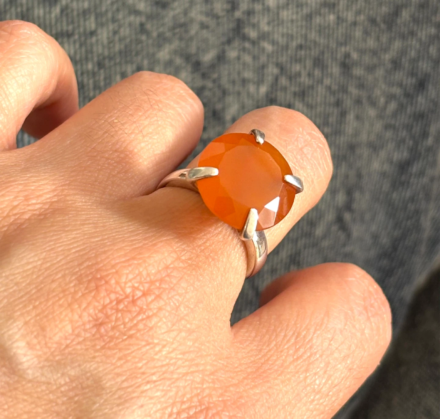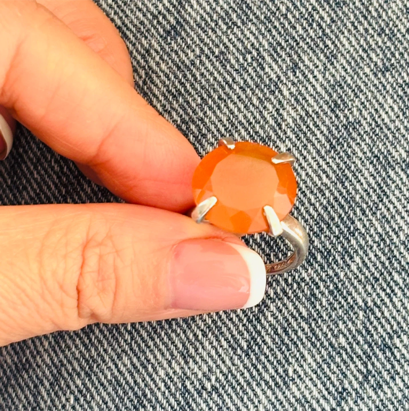 Selling a lovely statement 925 sterling silver ring with a diamond cut carnelian stone! It's in an excellent condition and ready for a new home!😁 US size 6 but fits 7 too due to the cut.