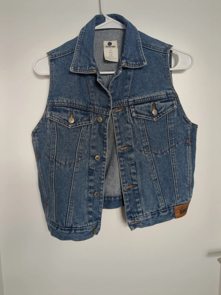 Barely worn Espirit denim vest that fits a women's size small to medium with adjusting buttons on the back. It's a classic blue denim wash and in perfect shape.