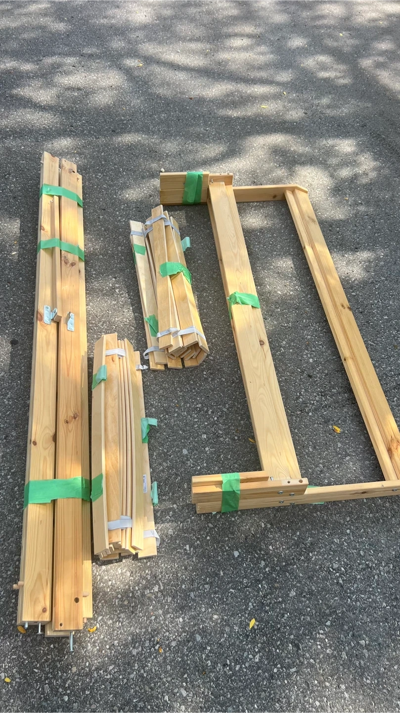 Selling a double size mattress along with its bed frame. The mattress is wrapped in plastic for protection. The bed frame is disassembled and ready for easy transport. Great for a guest room or a first apartment