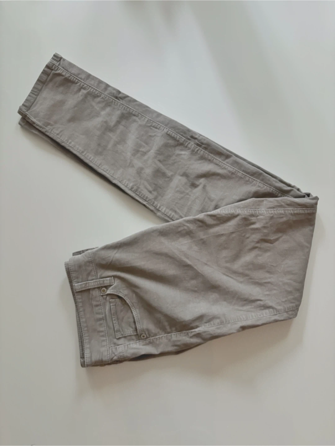 Selling a pair of Uniqlo corduroy pants in size 24x33. They have been barely worn. The material is 98% cotton and 2% spandex, making them super comfy.
