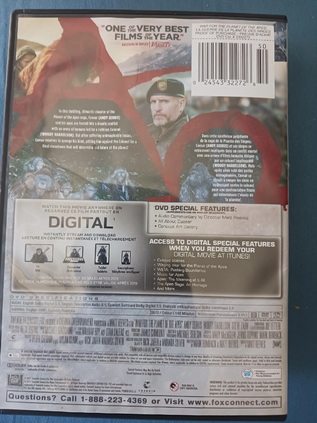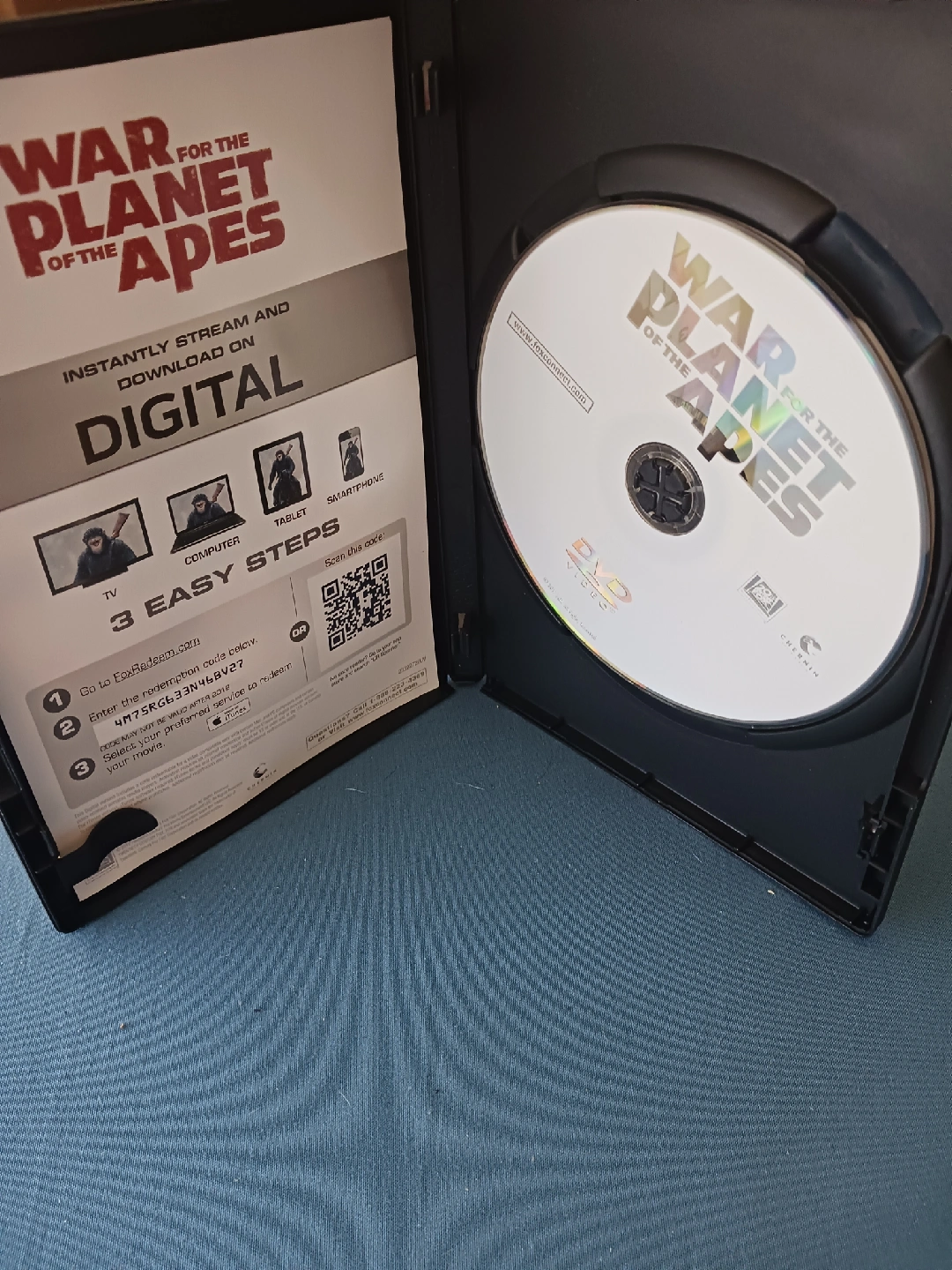 540Selling the DVD of War for the Planet of the Apes. It's in great shape and ready for a new home! Enjoy this thrilling chapter in the Planet of the Apes saga in the comfort of your own living room