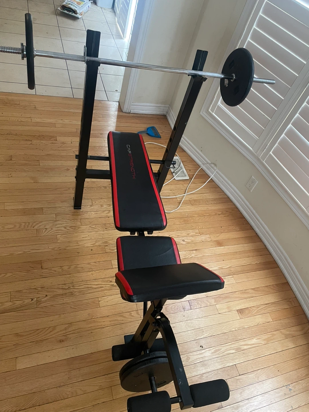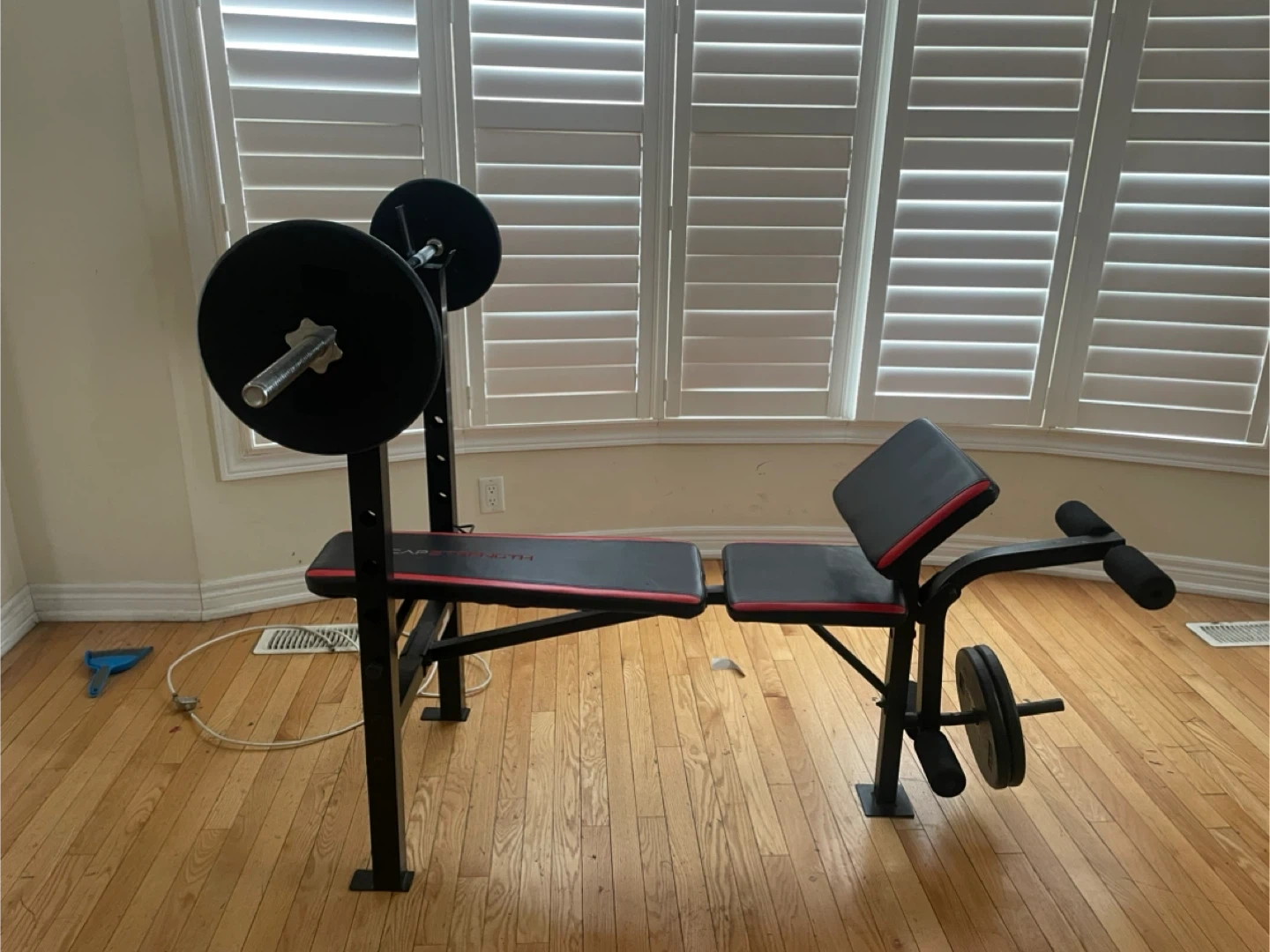 Selling a CAP Strength weight bench. Includes weights of 10lbs and 25lbs. Great for home workouts! It have total weight of 170lbs 4 X 25 lbs 2 X 10 lbs 2 dumbbells 25 lbs each +With the bench press including I am selling everything all at once $400 It is very very fair price