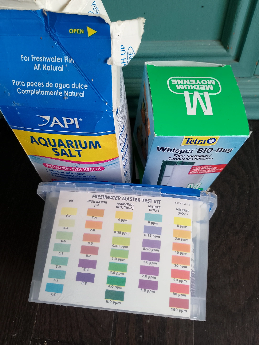 Selling a 30 gallon aquarium Includes API Aquarium Salt, Tetra Whisper Bio-Bag filter cartridges, and a Freshwater Master Test Kit for monitoring your aquarium's water quality comes with lid, vacuum and heater.