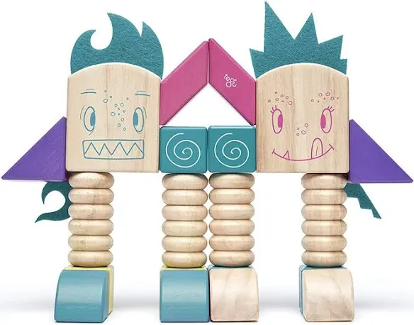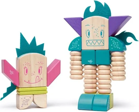 Tegu Sticky Monsters Magnetic Wooden Blocks - Beans & Tumtum