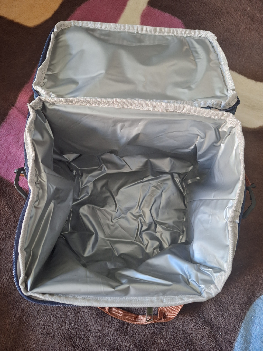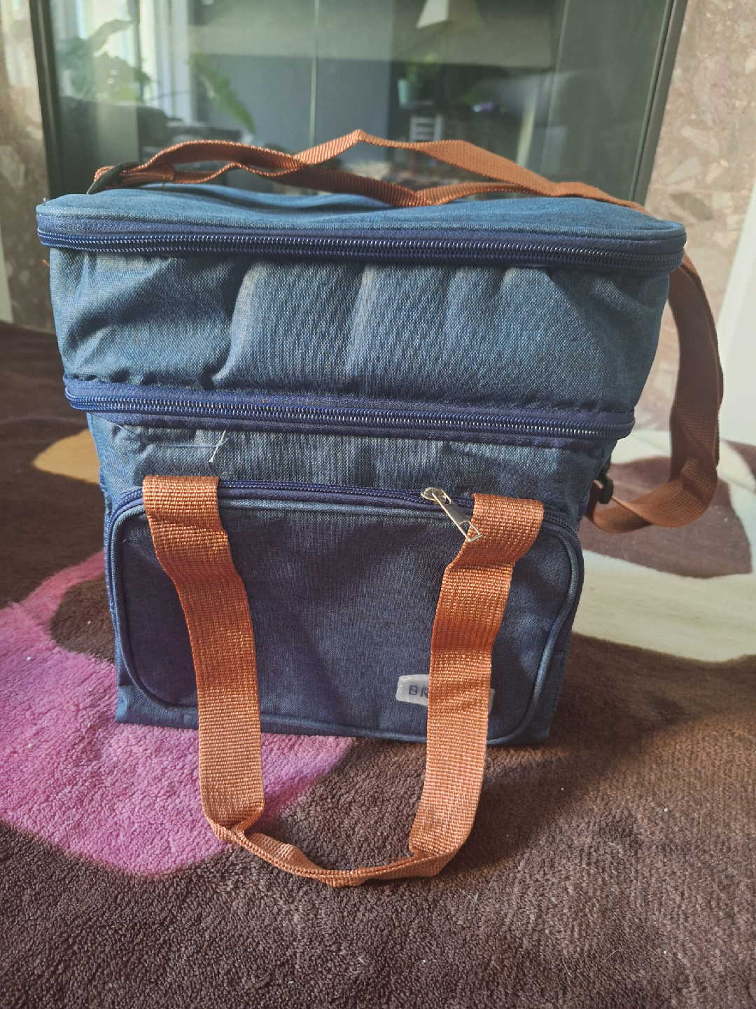 Keep your lunch cool with this Brivilas insulated lunch bag! It's a stylish and practical way to carry your meals. The bag features a two-compartment design, perfect for separating hot and cold items. The zippers are all working great! The dimensions are approximately 25cm x 18cm x 27.5cm.