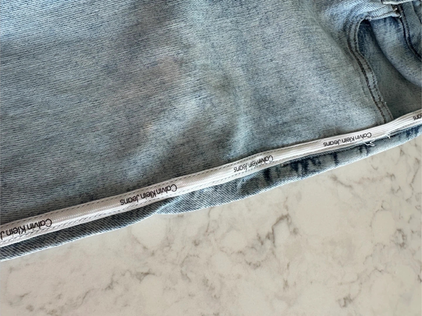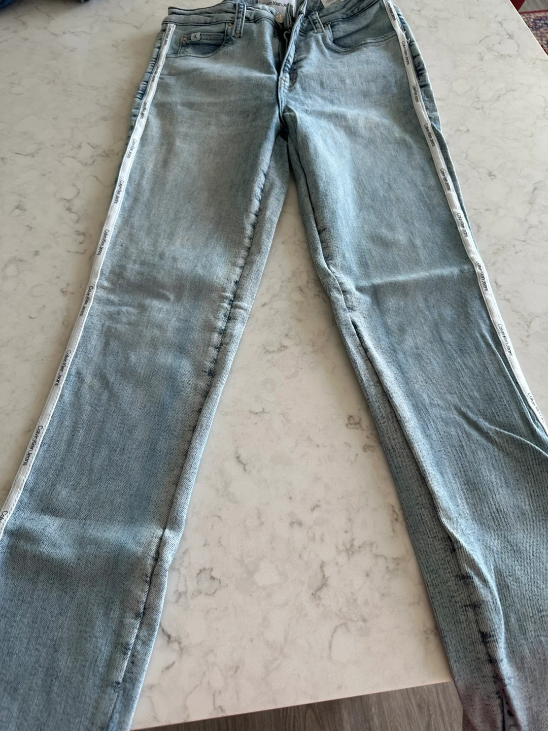 Selling a pair of Calvin Klein Jeans in a women's size 30. They have a light wash and a stylish design. Perfect for a casual look!