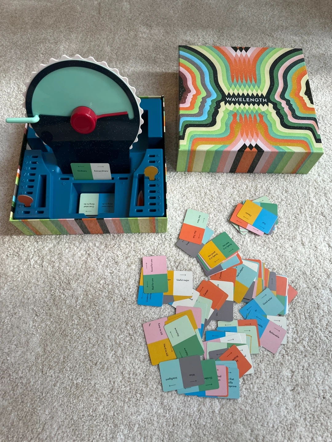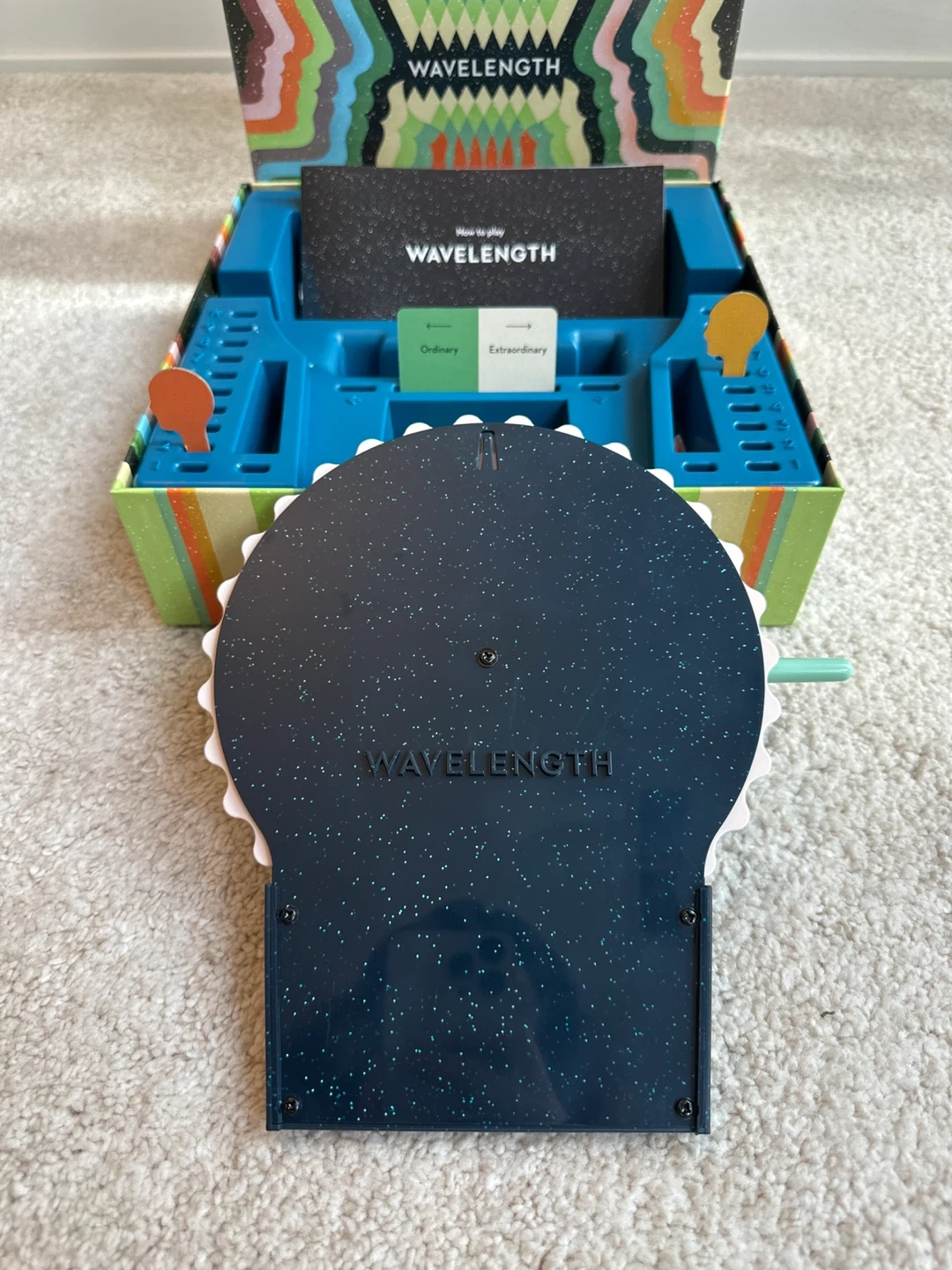 335Selling the new Wavelength board game! It's a fun party game where teams try to guess where a hidden target is on a spectrum. Comes with all the cards and components in the original box. Great for game nights!