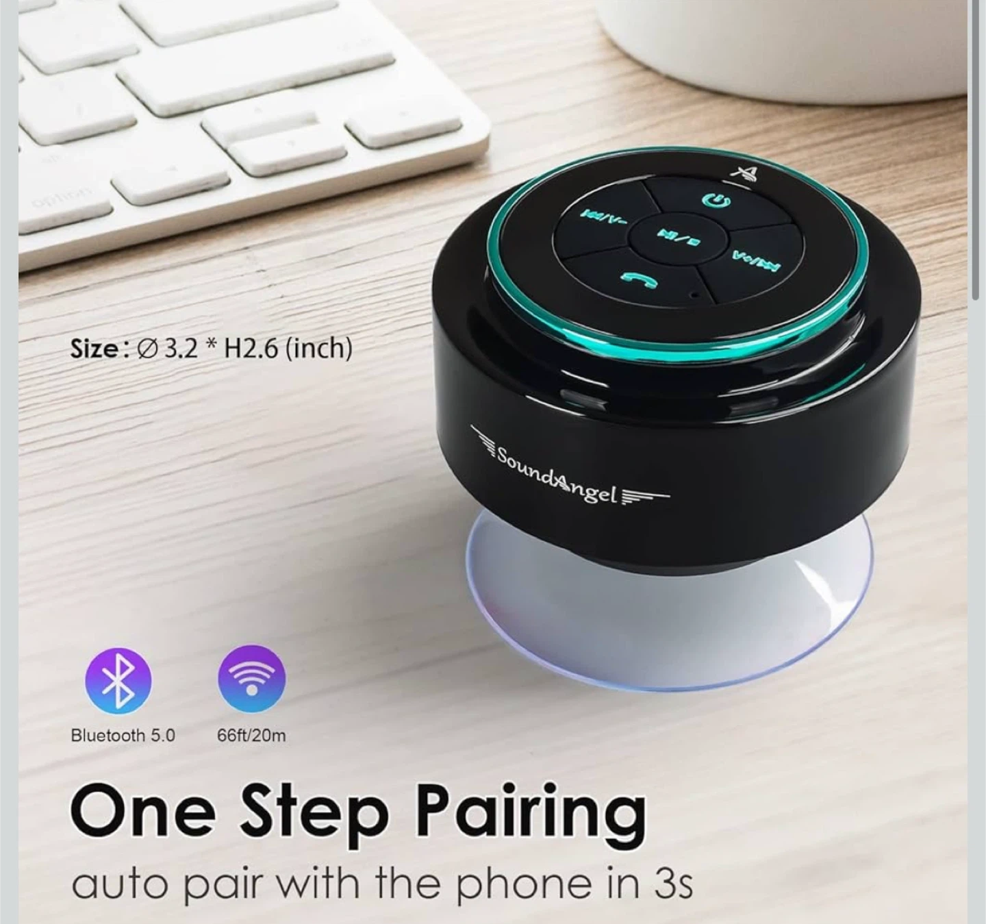 Enjoy your music in the shower with this SoundAngel Bluetooth speaker! It features a strong suction cup for easy attachment to any smooth surface.