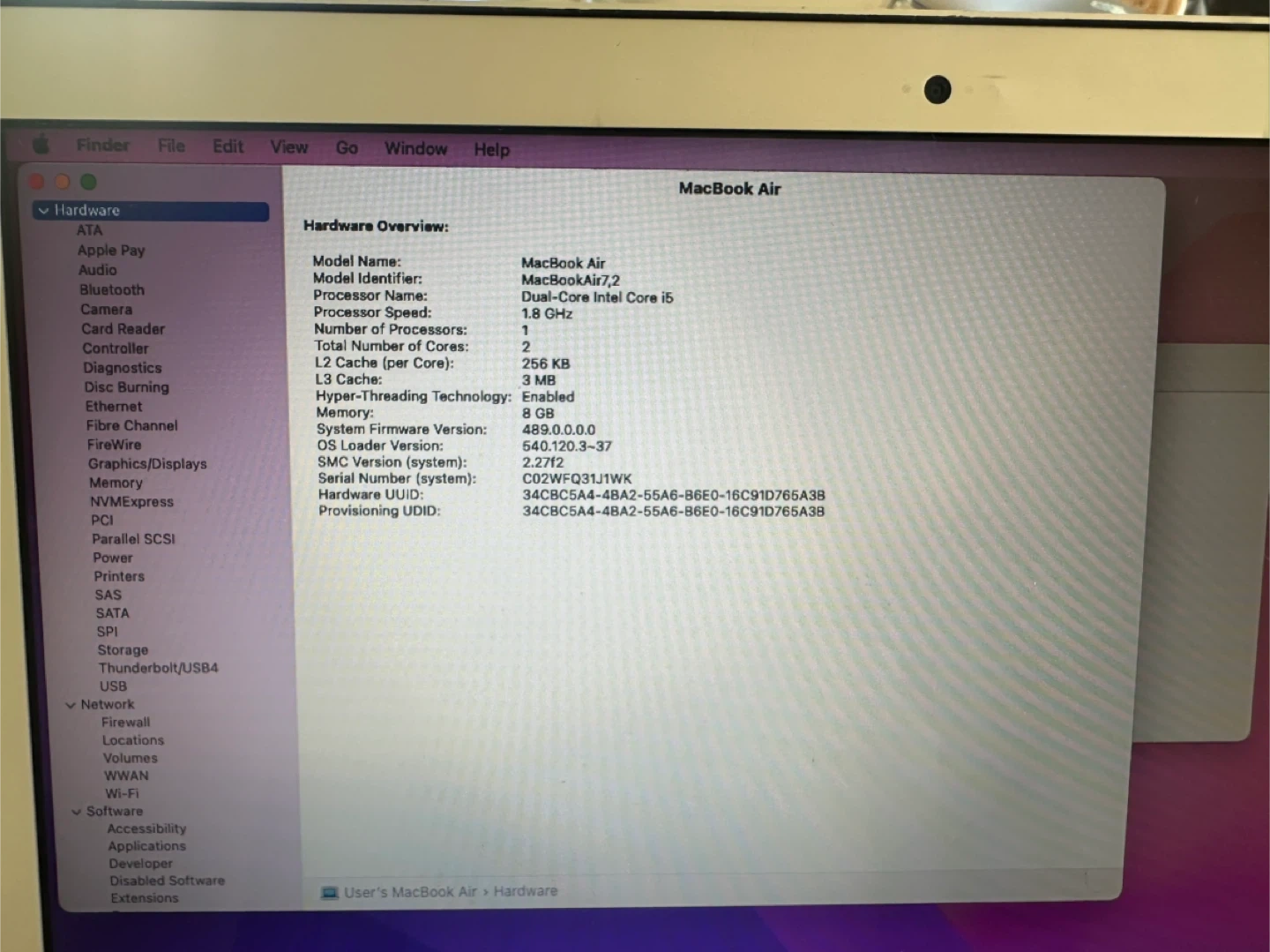 • Model: MacBook Air (13-inch, 2017)