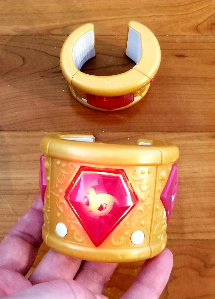 Press the jewel in the center of the cuff to see the bracelets for lights, music and phrases.