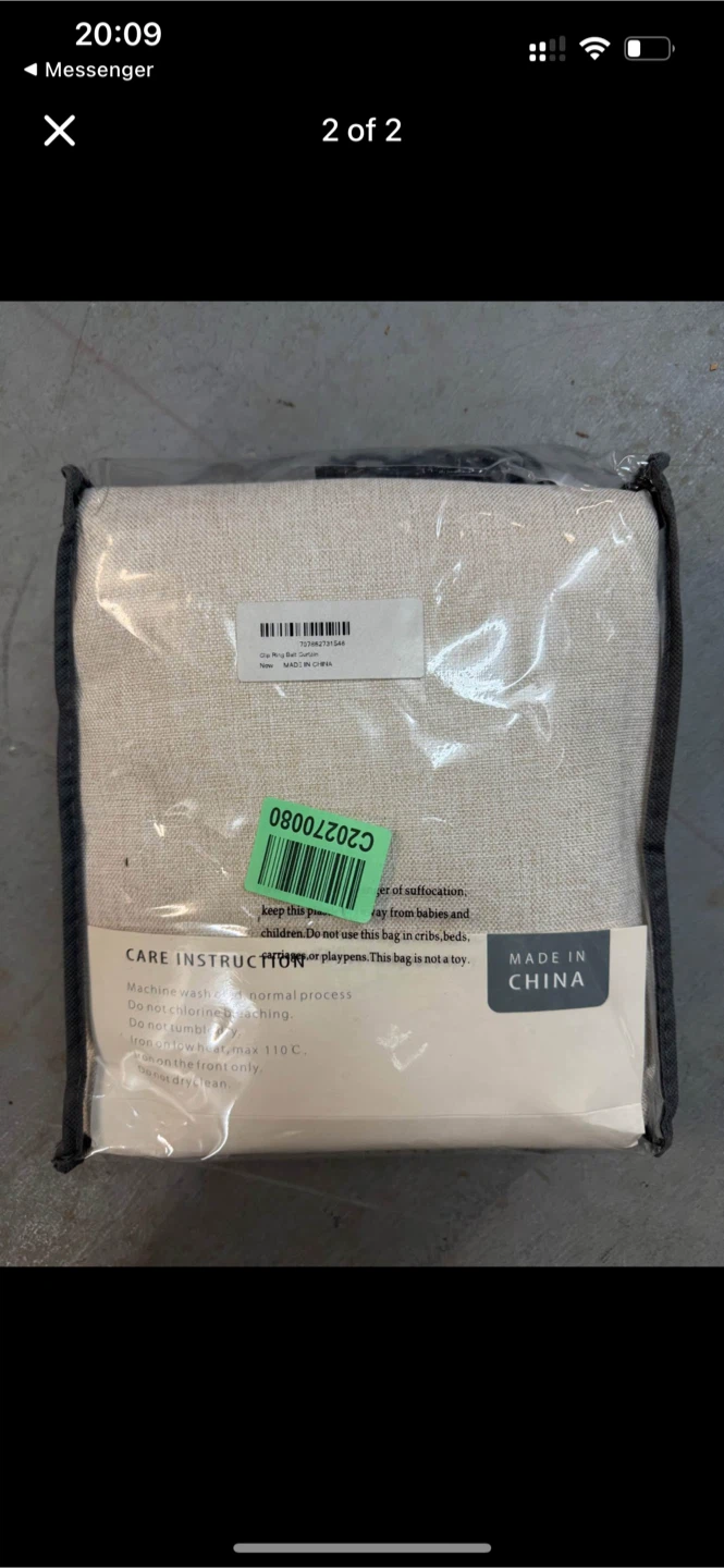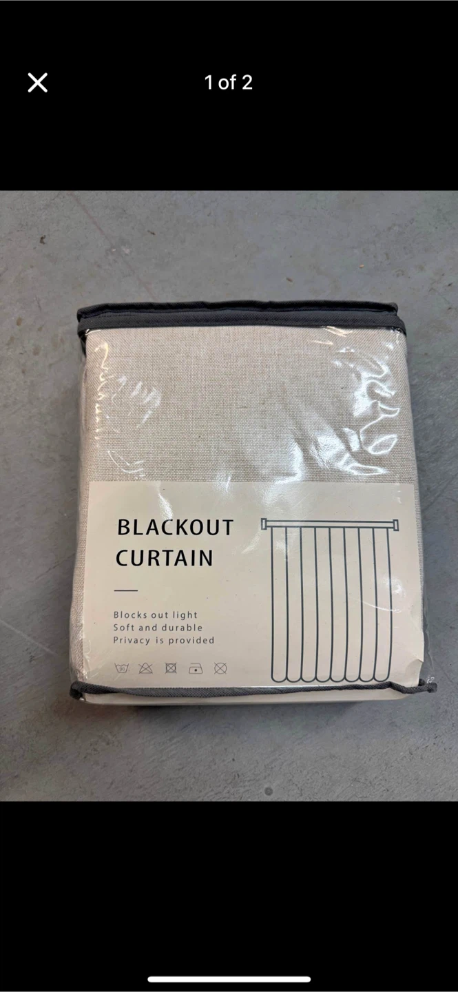 Selling a blackout curtain that's still in its original packaging! It's designed to block out light while providing a soft and durable feel. It's also great for adding privacy to any room. The care instructions indicate it's machine washable under normal process, do not bleach, do not tumble dry, ironing max 110 C, and dry clean is possible