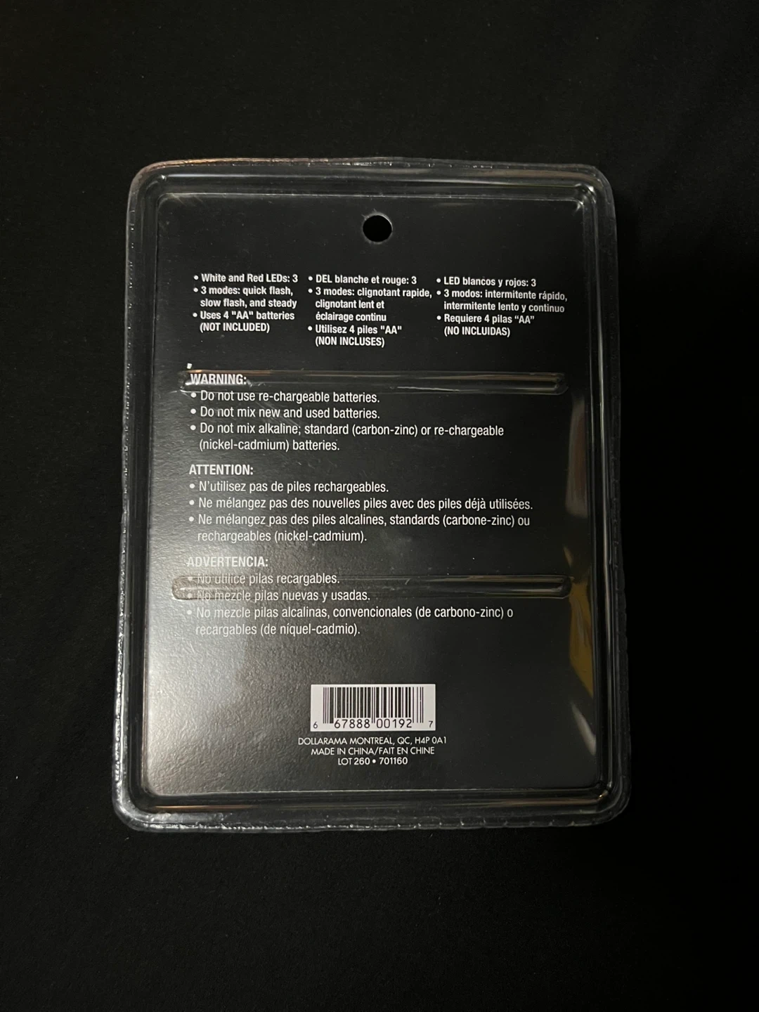 Selling a brand new set of Bikerama bicycle lights, still sealed in the original packaging! The set includes both a red and white LED light. Each light has 3 LEDs and 3 modes: quick flash, slow flash, and steady. Please note that each light requires 4 AA batteries, which are not included