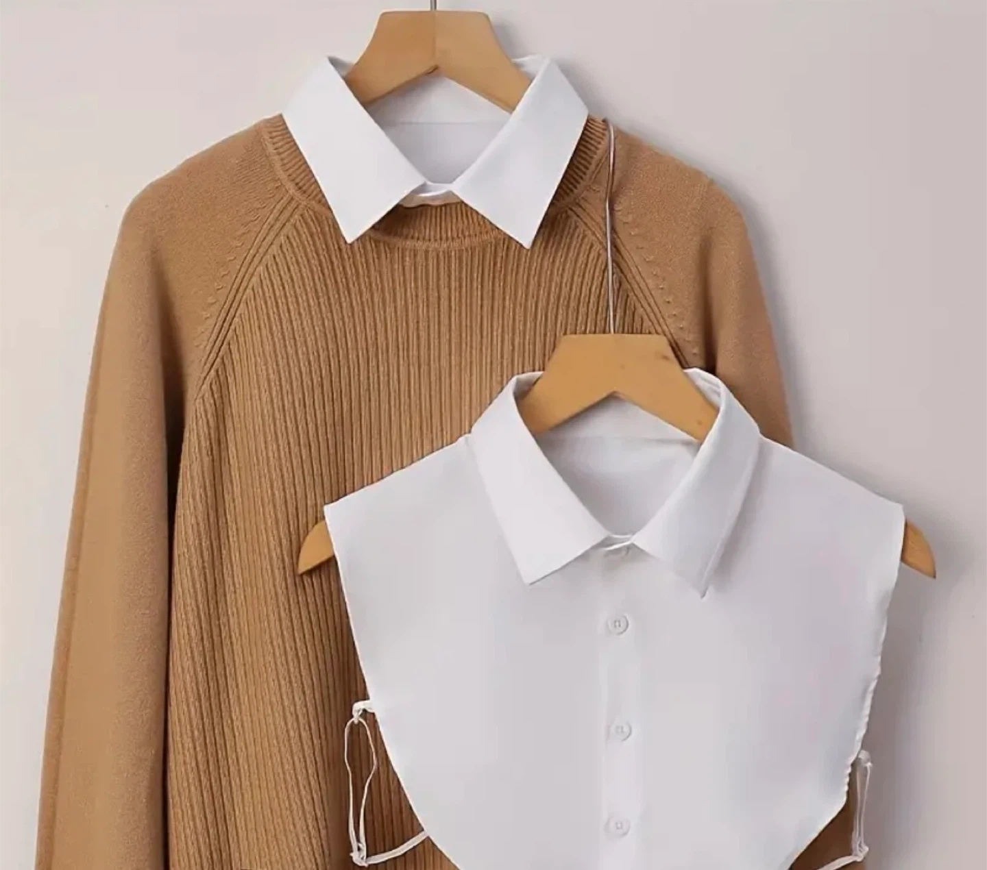 Add a touch of style to any outfit with this detachable cotton shine dickey collar! It's a simple way to elevate your look without the bulk of a full shirt. Perfect for layering under sweaters or dresses, this white collar is a versatile addition to your wardrobe.
