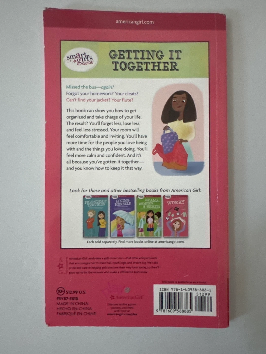 Selling a gently used copy of American Girl's 'Getting It Together' book! It's a Smart Girl's Guide on how to organize your space, your stuff, your time, and your life. The book is in great condition and is perfect for young readers looking to get organized!