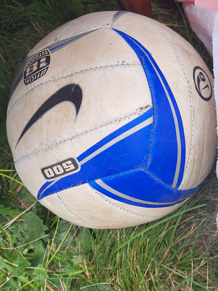 Nike TB Outdoor Official 500 soccer ball. It shows lots of signs of wear and tear because has been in my shed for a long time, but hasn't been used!