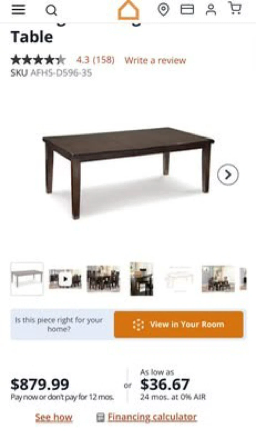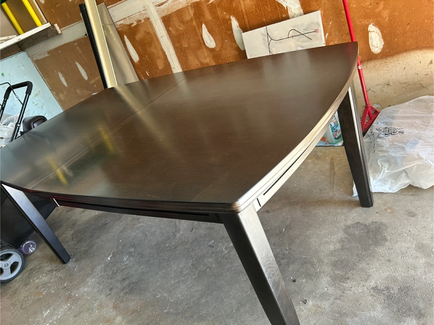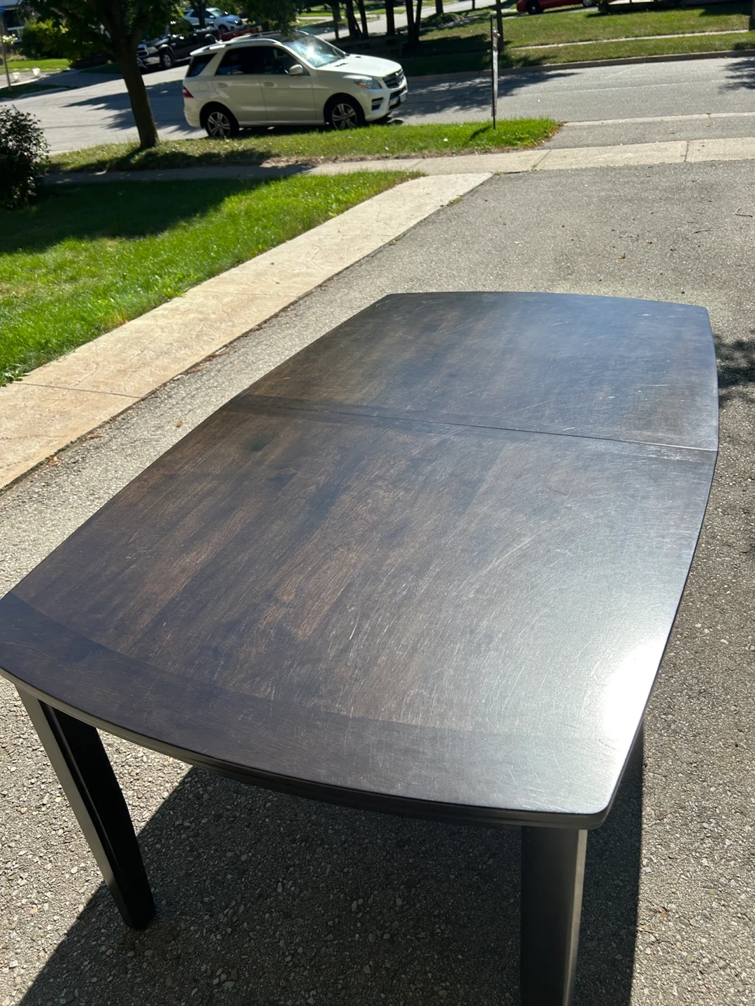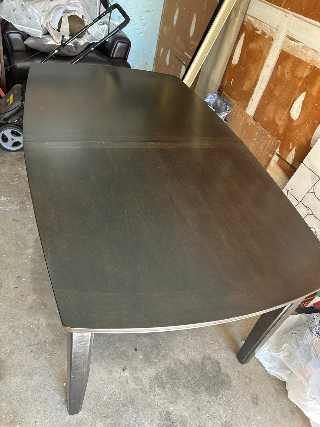 Selling a dark brown dining table with an extendable leaf. The table is in good condition and would be a great addition to any dining room. Originally bought for $879.99