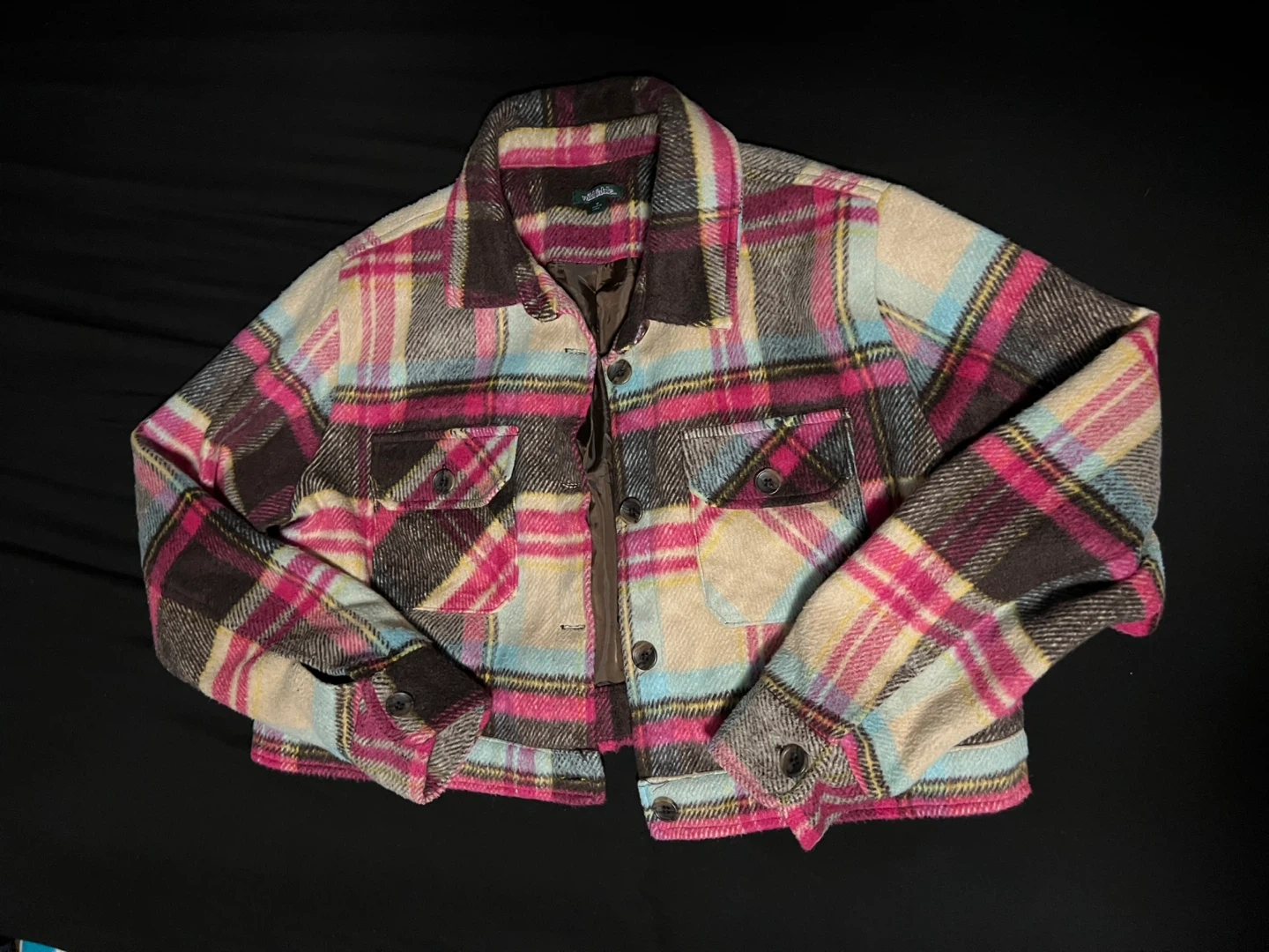 Cozy up in this Wild Fable plaid jacket! It's a size medium and features a fun, colourful plaid pattern. Perfect for adding a pop of colour to your wardrobe and staying warm on cooler days