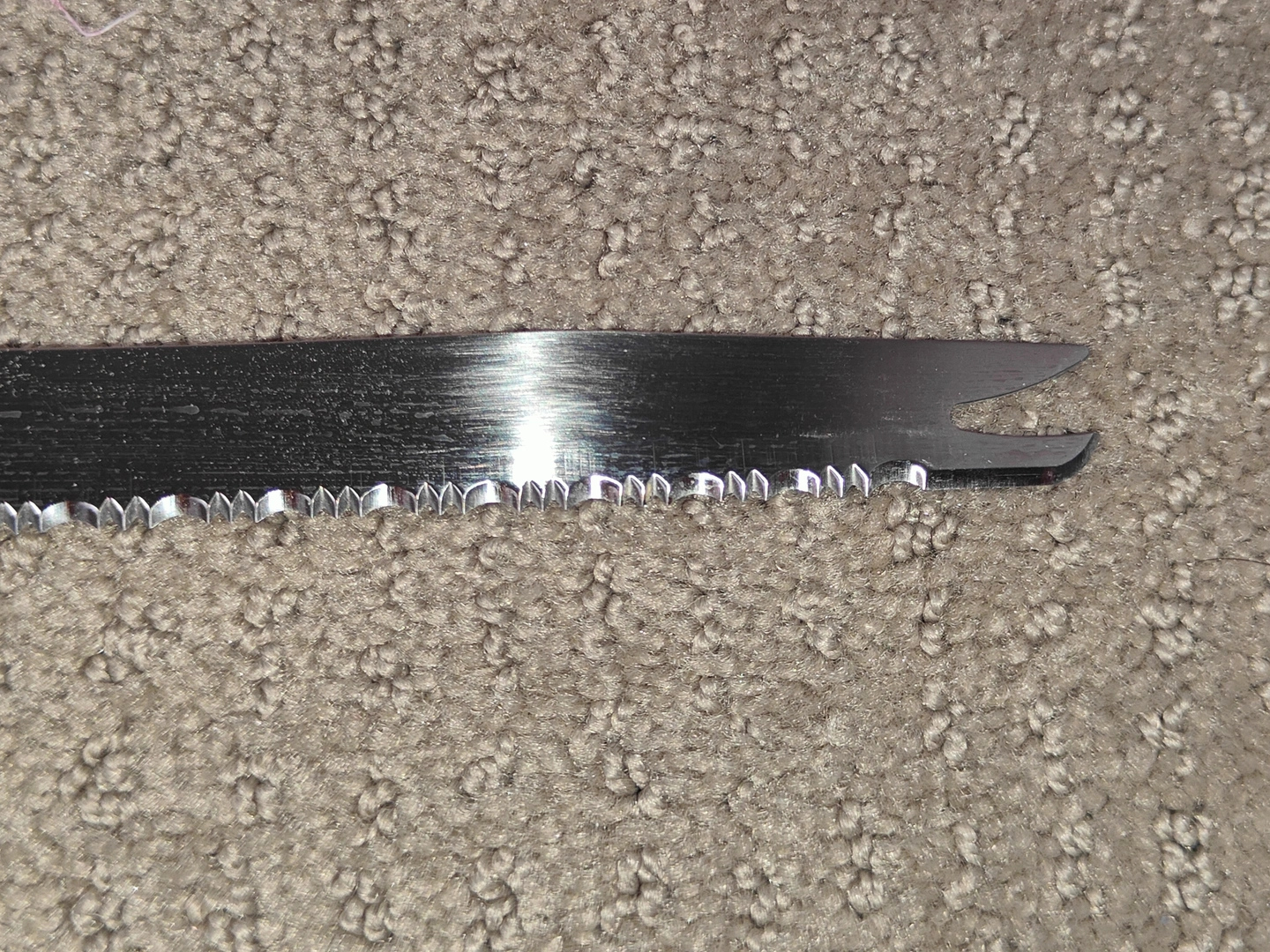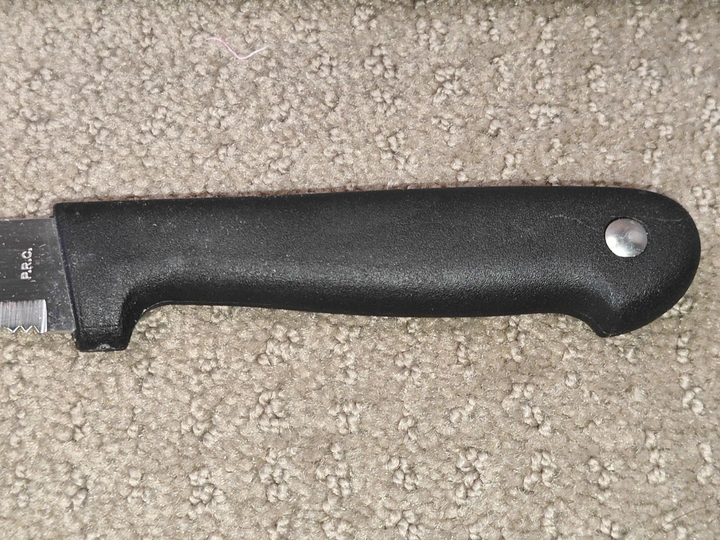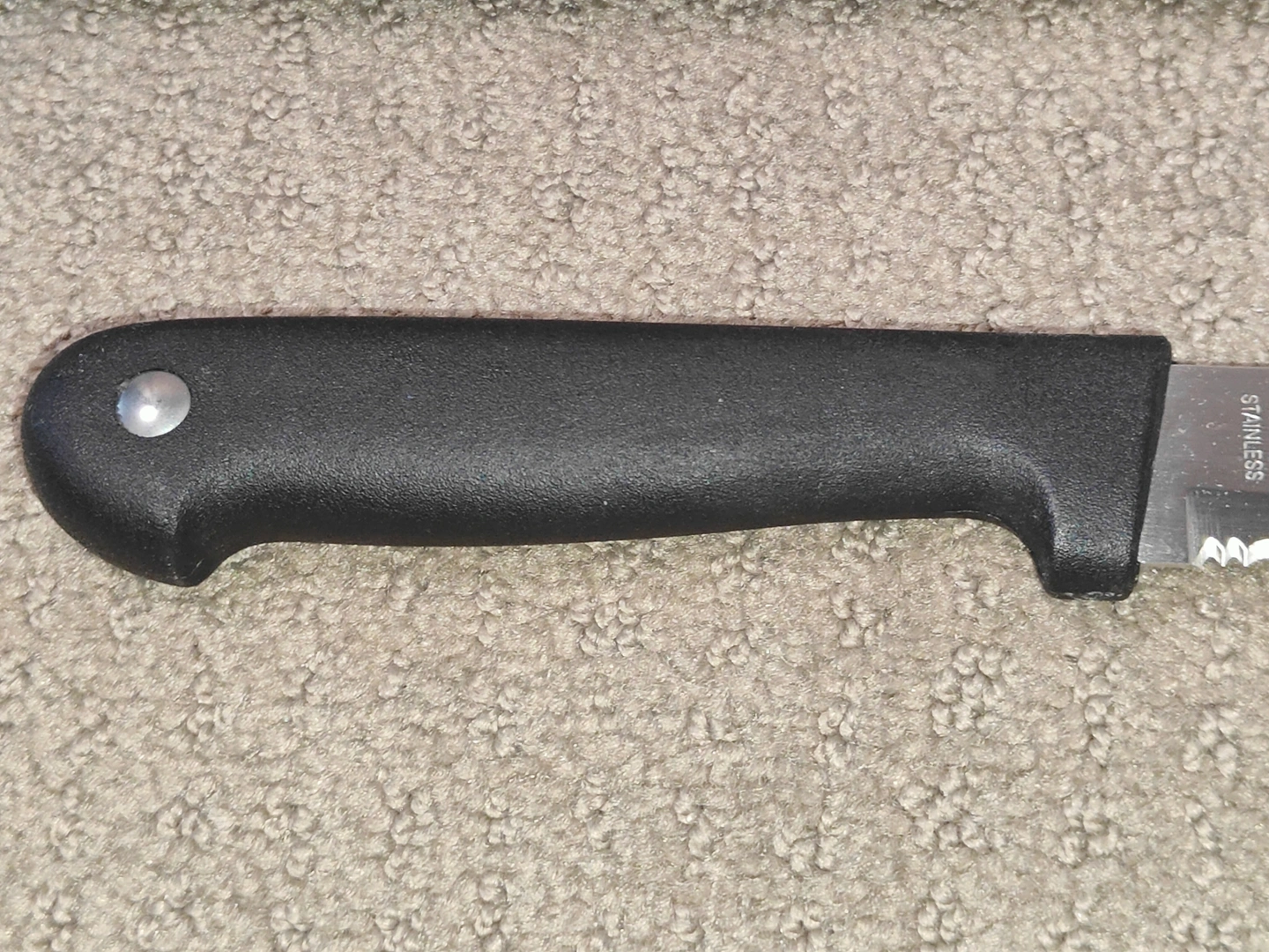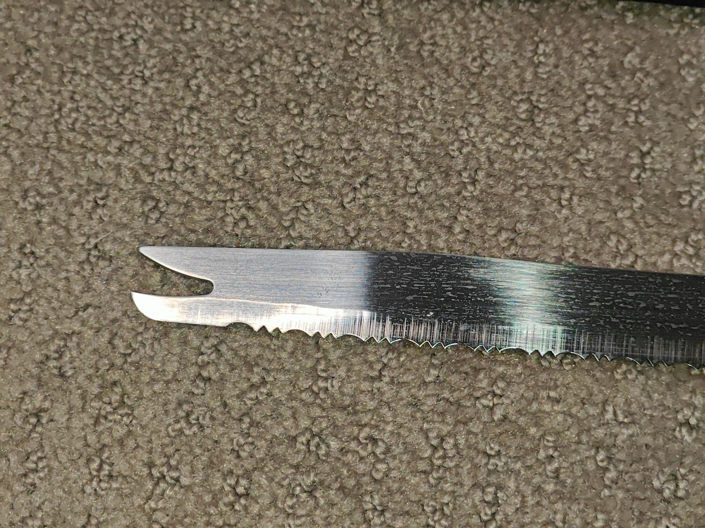 I am selling a Master Cut 2 Carve & Serve 8" Kitchen Knife by Jesco in used, good condition. Get a classic "carve & serve" knife with this Master Cut 2 by Jesco. This knife comes in its original packaging and is in good, used condition. Known for its serrated edge and triple-tempered surgical stainless steel, this is a versatile knife perfect for carving meats, slicing breads, and serving with the unique forked tip. This knife has an 8-inch blade and a total length of 13 inches, making it a great size for your kitchen. The blade is in solid shape with no issues, and the handle is comfortable and secure. Whether you're looking for a reliable carving knife for the holidays, a classic tool to add to your collection, or a sturdy knife for everyday use, this vintage Master Cut 2 is ready to go.