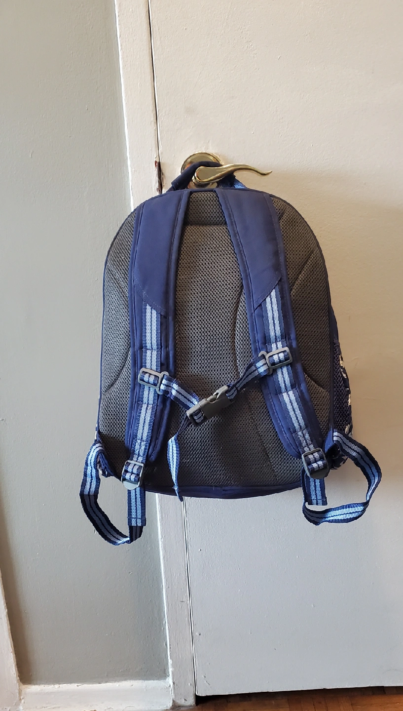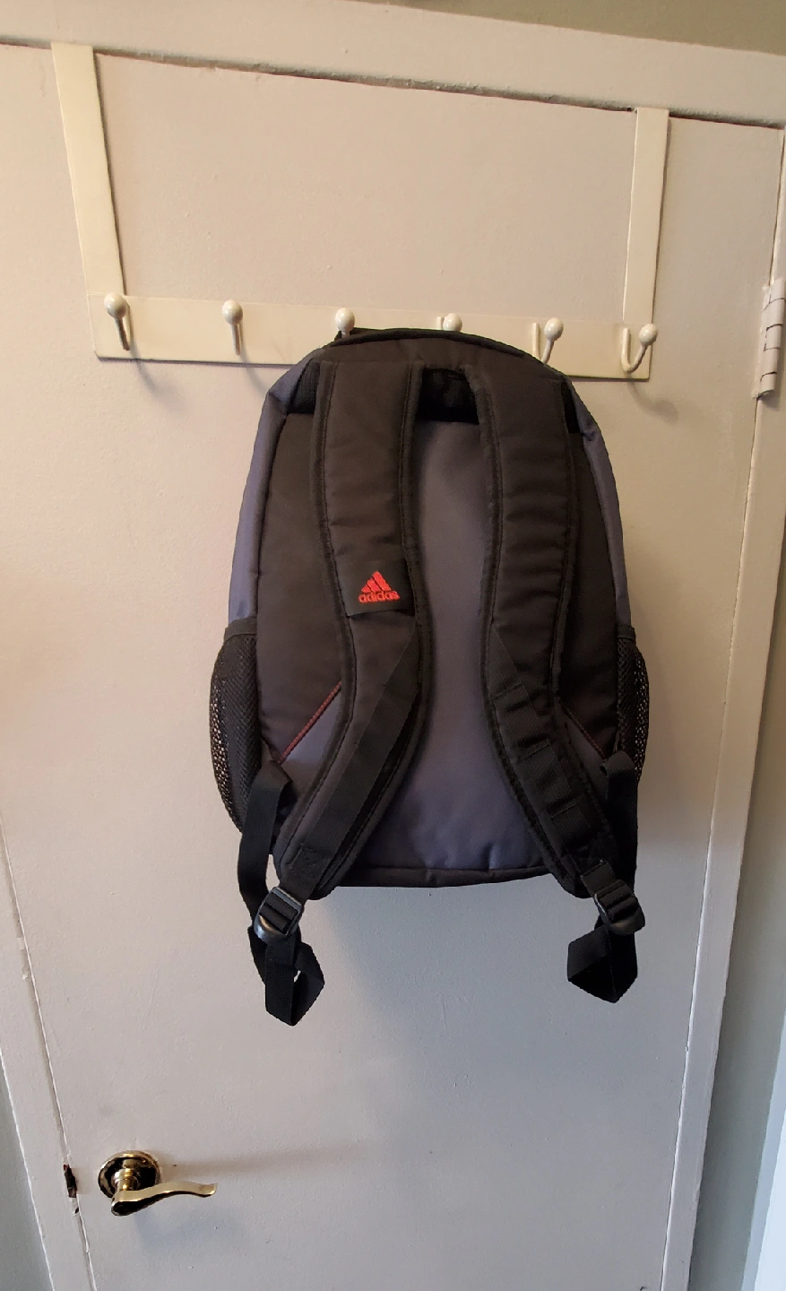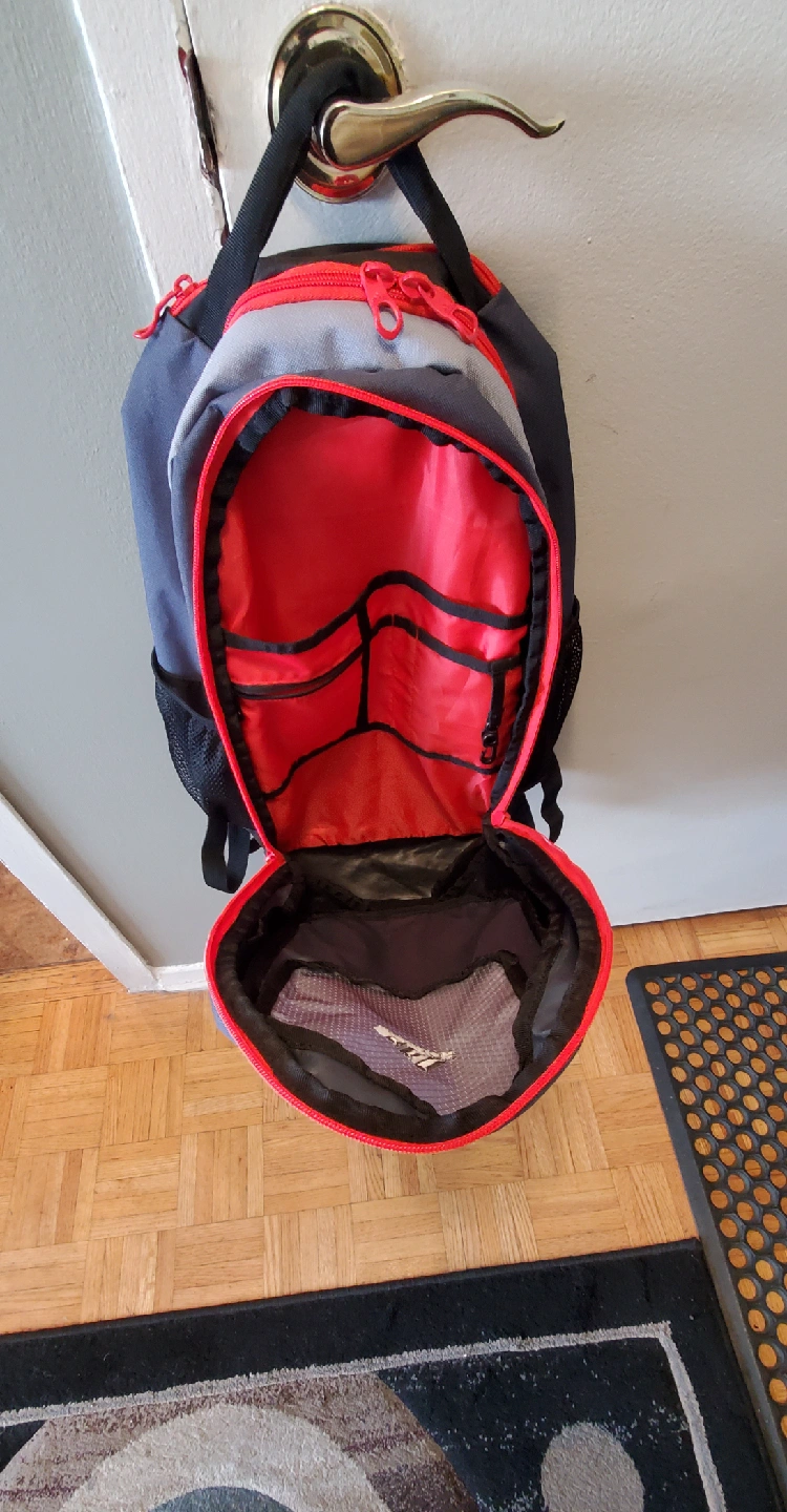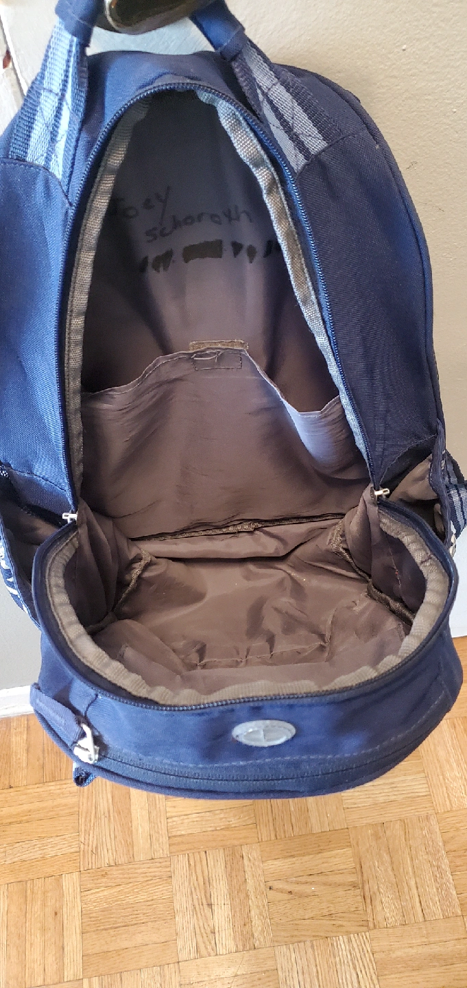 I have backpacks for sale! One is a Champion backpack with a navy blue background and white Champion logos all over. The other is an Adidas backpack in gray and black with red accents. Both are in good condition and ready for a new home.