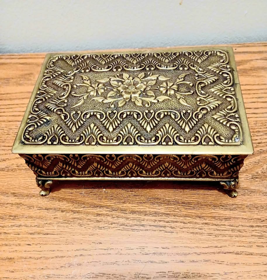Antique Embossed Solid Brass Jewelry Box