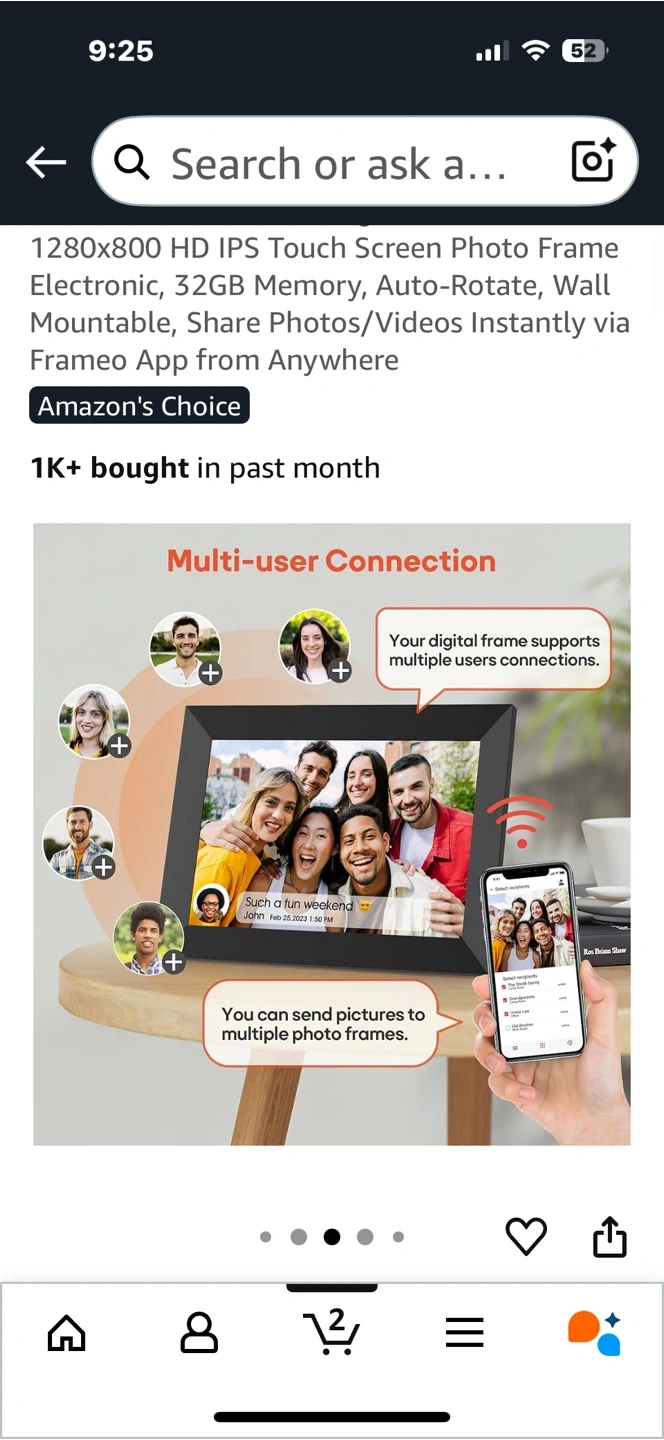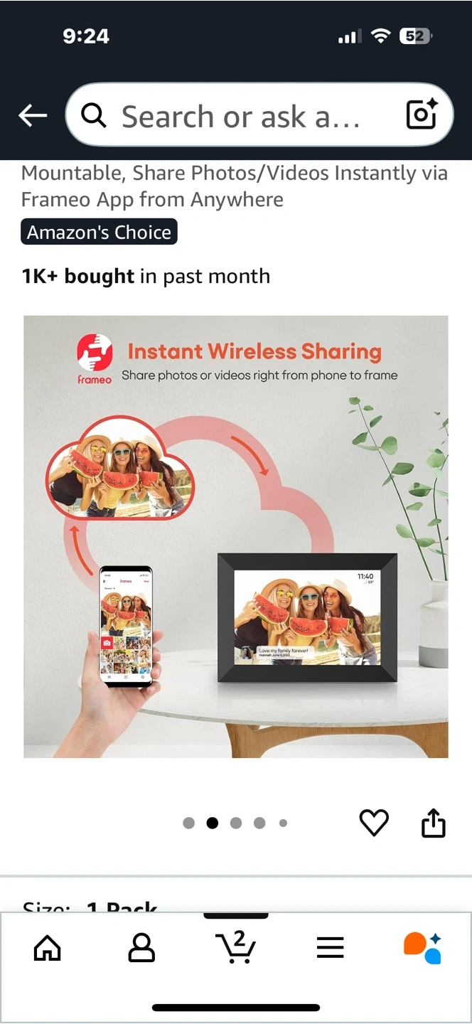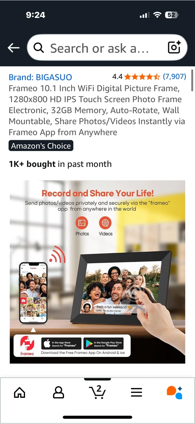 84Looking to sell a Frameo 10.1 Inch WiFi Digital Picture Frame. It has a 1280x800 HD IPS Touch Screen Photo Frame. It's electronic, has 32GB Memory, Auto-Rotate, and is Wall Mountable. You can share photos/videos instantly via the Frameo App from Anywhere