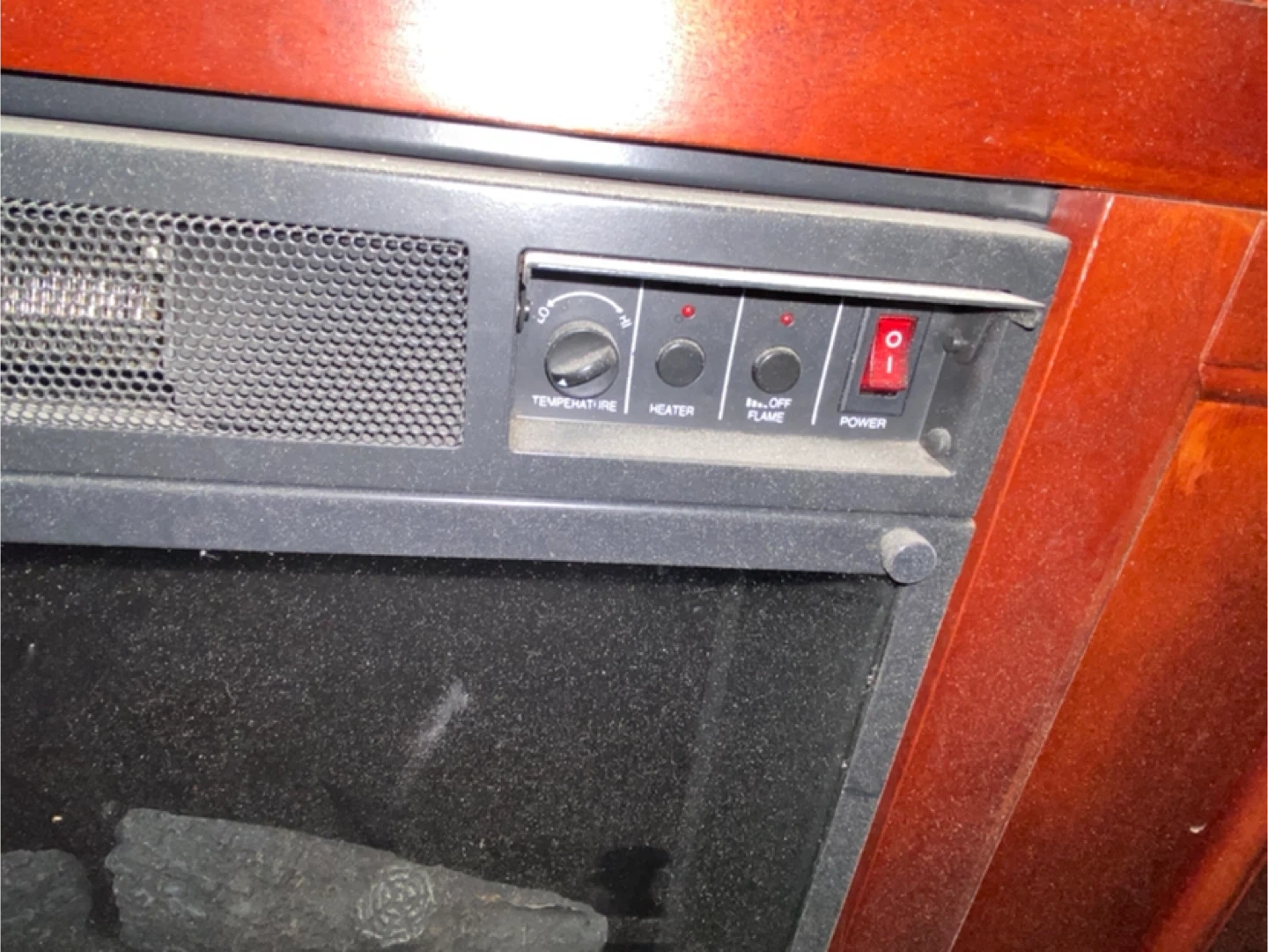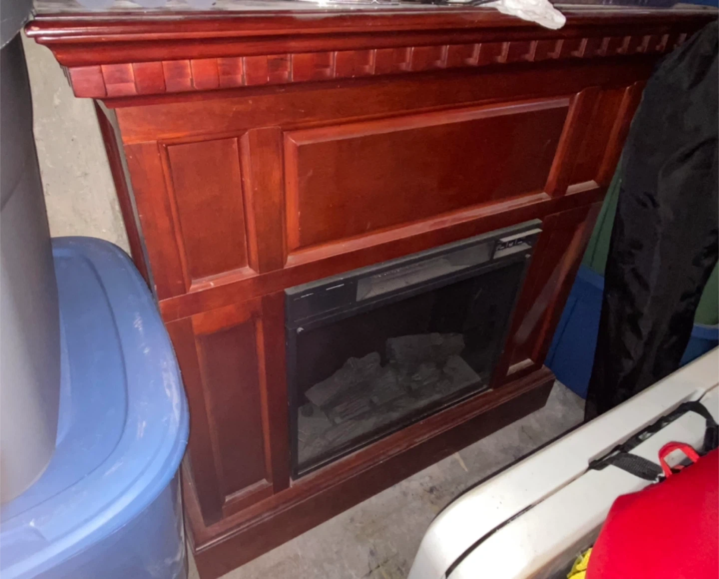 Cozy up your space with this electric fireplace heater! It features a cherry wood finish that adds a touch of warmth to any room. The heater has adjustable temperature settings and a realistic flame effect. Perfect for creating a relaxing atmosphere on chilly evenings. Fully functional, size is (inches) 42wide x14back to front x40 1/2tall
