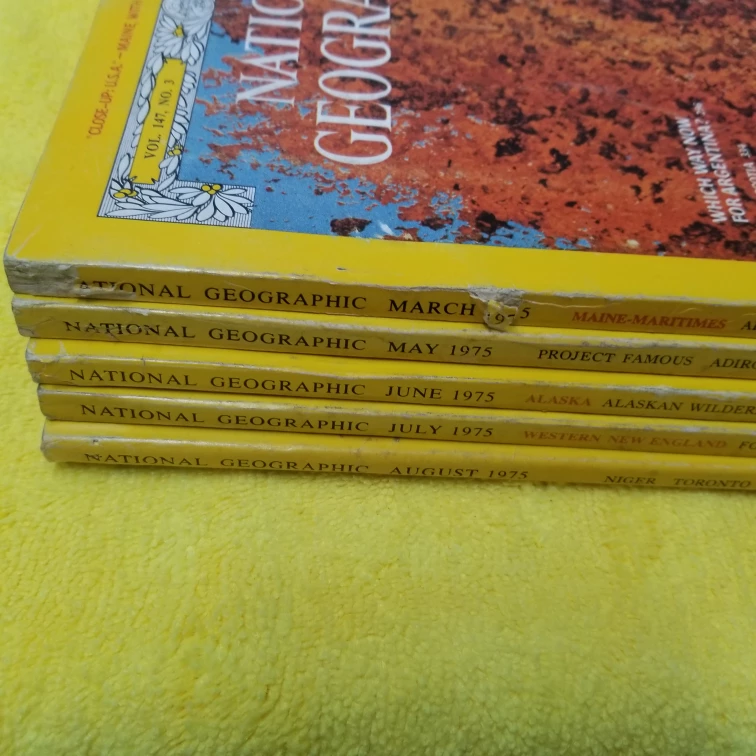 Selling a collection of National Geographic magazines from 1975! Includes the March, May, June, July, and August issues. Perfect for collectors or anyone interested in vintage publications