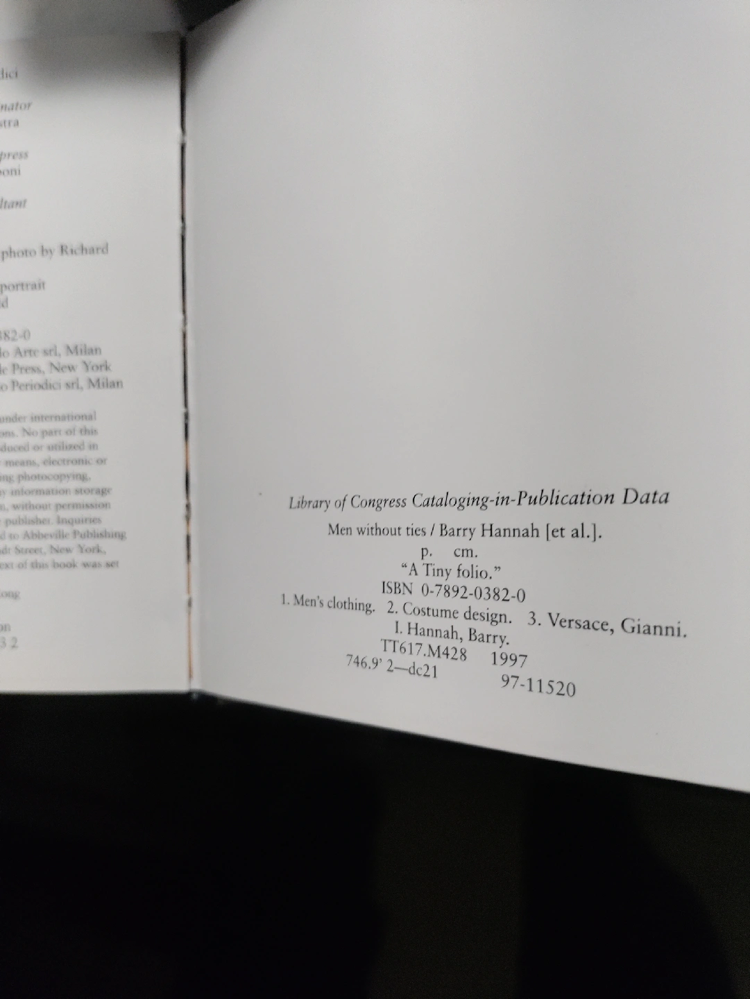 Selling a copy of 'Men Without Ties' by Gianni Versace. This book features costume design and men's clothing. A tiny folio from 1997
