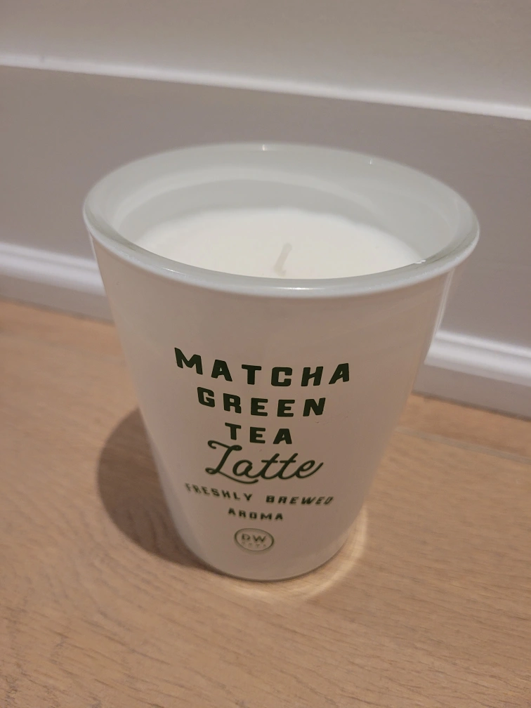 Selling a DW Home candle with a Matcha Green Tea Latte aroma. It's freshly brewed and ready to add a cozy touch to your space. Never lit.