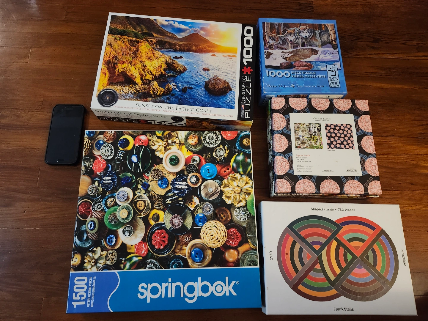 lot of 5 complete 500 to 1500 pcs puzzles. Great condition