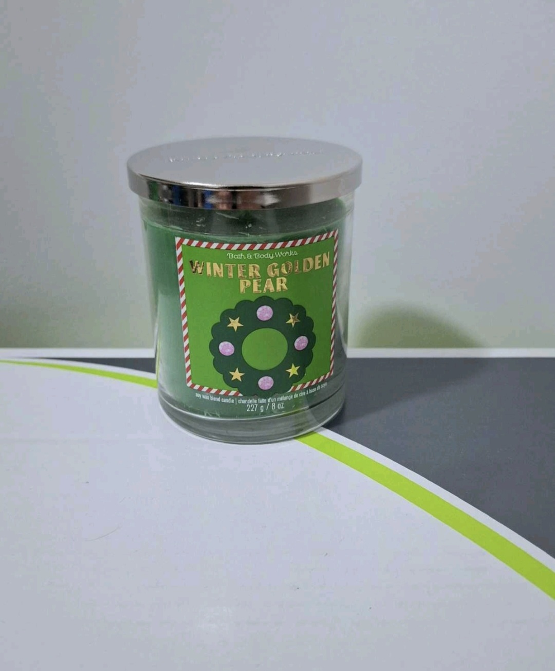 Selling a Bath & Body Works Winter Golden Pear candle! It's a lovely soy wax blend candle in a 227g / 8 oz size. The scent is perfect for creating a cozy atmosphere. Enjoy the delightful aroma!