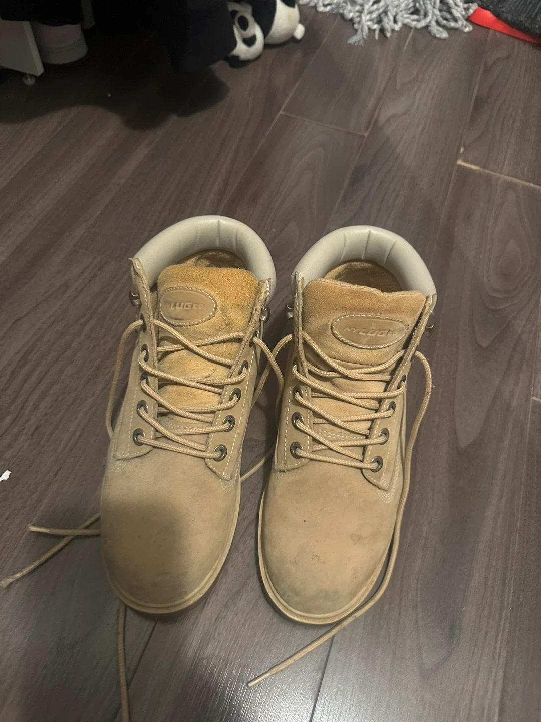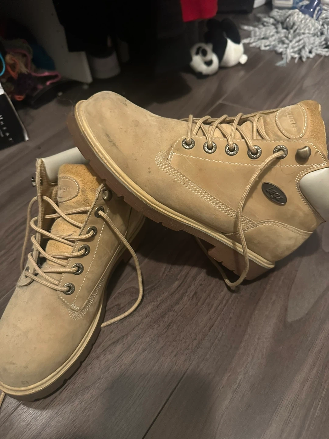 Selling a pair of Lugz boots in tan. They show some signs of wear but are still in good condition for everyday use. Please see photos for details!