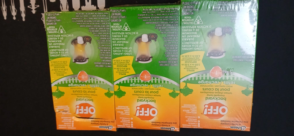 Selling new OFF! Backyard Mosquito Lamp Refills. These refills are designed for use with the OFF! Backyard Mosquito Lamp and provide up to 6 hours of repellency. They are effective in an area of 3.05 m x 3.05 m. Keep your backyard mosquito-free!
