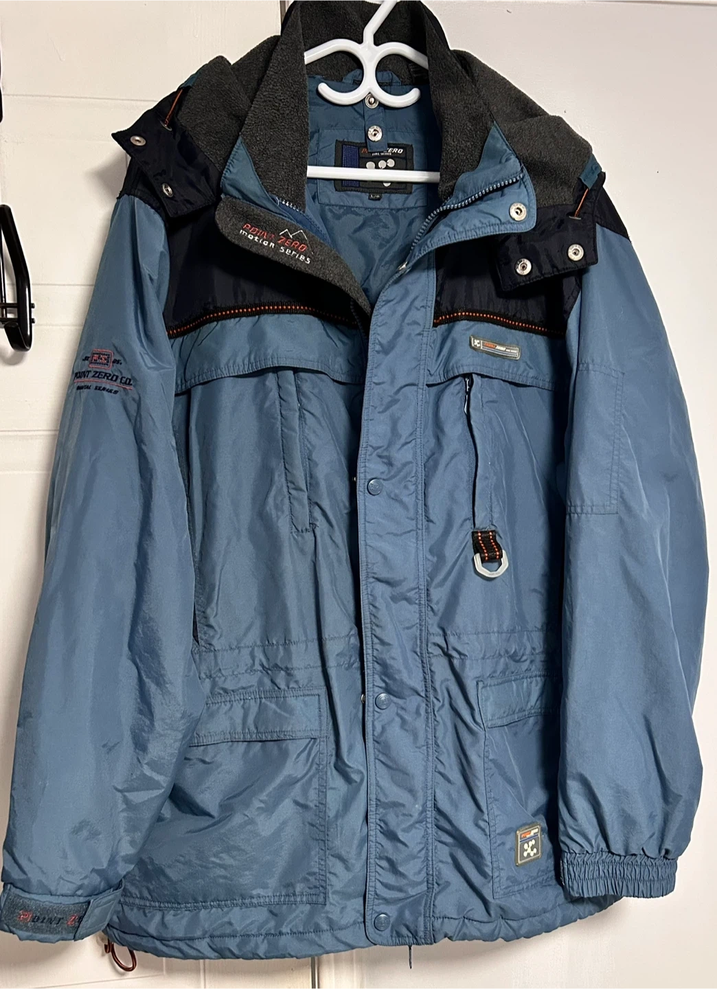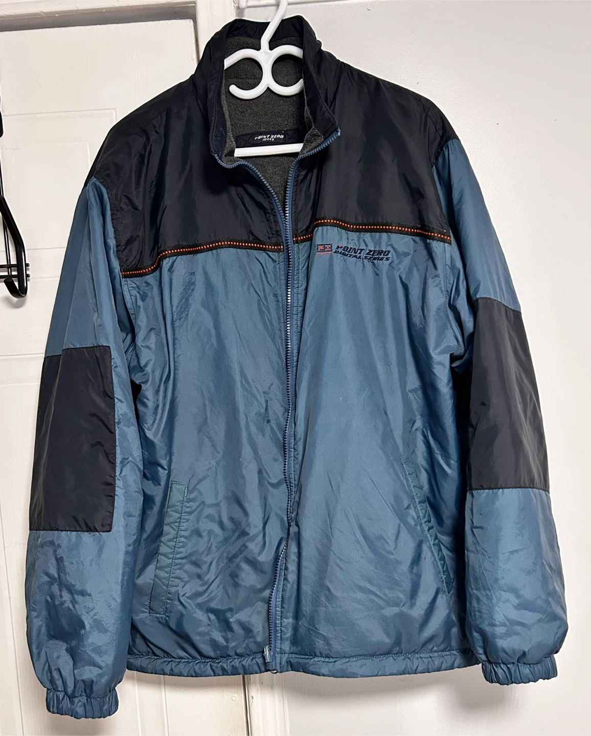 Here's a Point Zero Digital Series jacket in a lovely shade of blue! It's perfect for keeping warm and stylish during those chilly days. The jacket features a full zip closure and a comfortable fit. Take a look at the pictures and let me know if you have any questions!